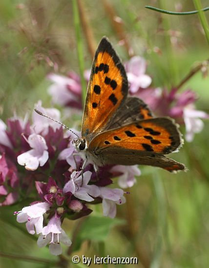 Bildname: Kleiner Feuerfalter (Lycaena phlaeas) auf Dost (Origanum vulgare)