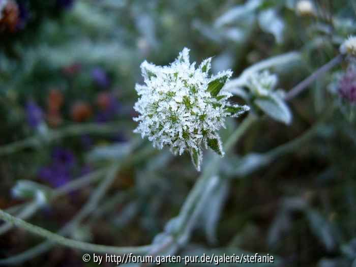 Bildname: Rauhreif auf Knautien-Samenstand