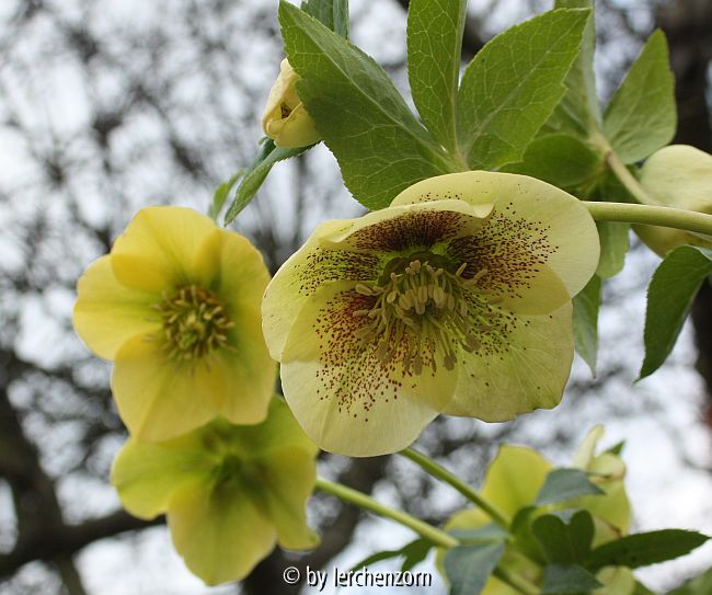 Bildname: Helleborus-Hybride, gelblich, gefleckt