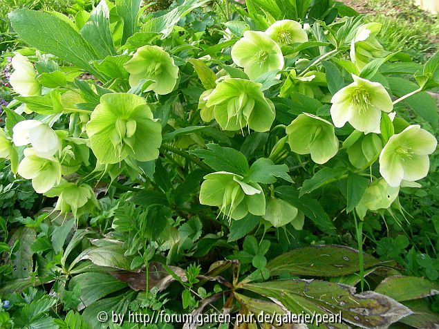 Bildname: Helleborus orientlais grün gelb weiß grün