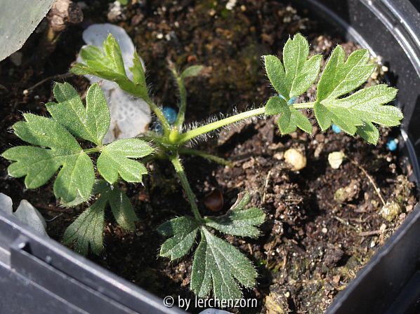 Bildname: Frühlings-Küchenschelle (Pulsatilla vernalis), vorjähriger Sämling