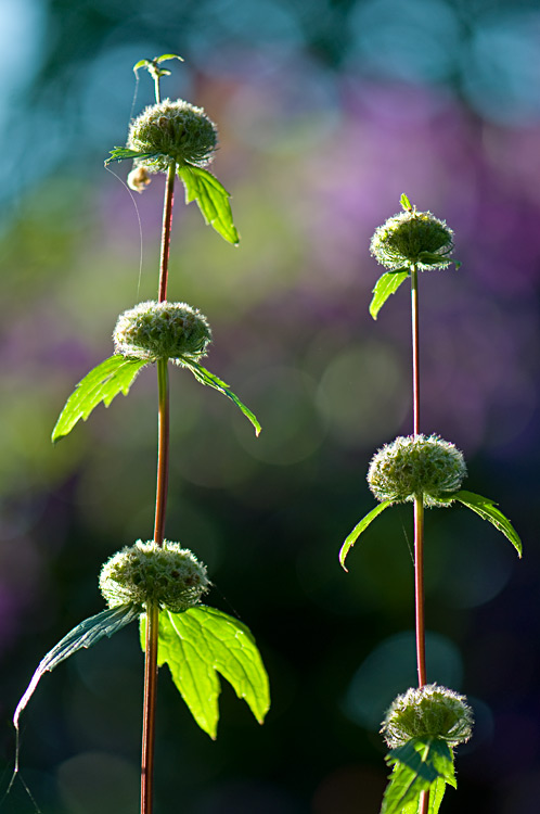 Bildname: Phlomis tuberosa ´Amazone´ vor Clematis ´Superba´