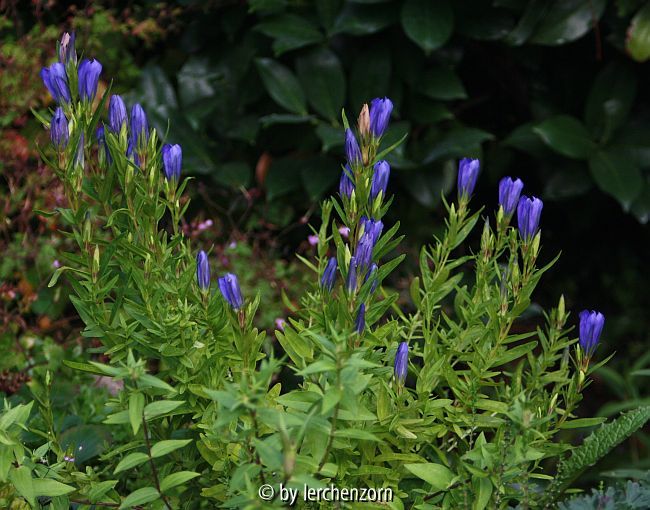 Bildname: vmtl. Lungenenzian (Gentiana pneumonanthe); Kultivar "Diana"?, Etikett: "Bergenzian"