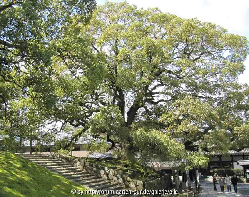 Vor dem Tempel Shoren-in stehen gigantische Kampherbäume.