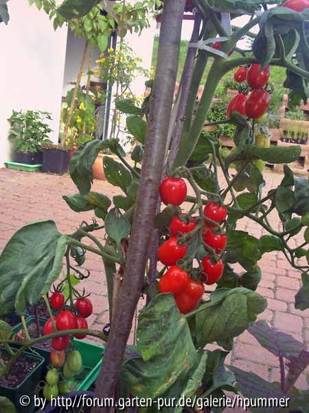 Eine köstliche süße, rote , länglich-ovale Kirschtomate