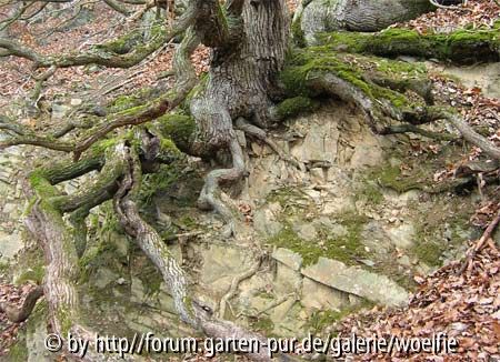 Bildname: Edersee Knorreichenstieg Traubeneiche sucht halt in Grauwacke
