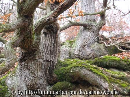 Bildname: Edersee Knorreichenstieg zwei Traubeneichen am hang