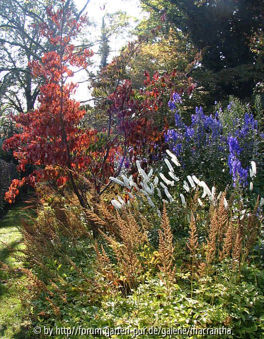 Bildname: Herbstfärbender Blumenhartriegel kombiniert mit spätem eisenhut und Cimicifuga simplex