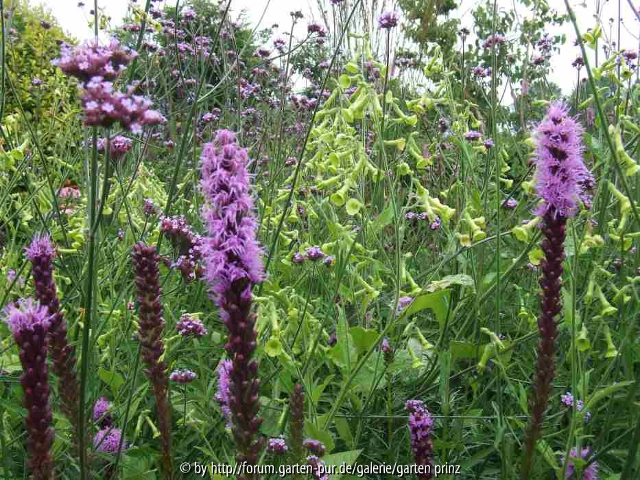 Bildname: Liatris spicata mit Nicotiana langsdorffii und Verbena bonariensis (2011/07)