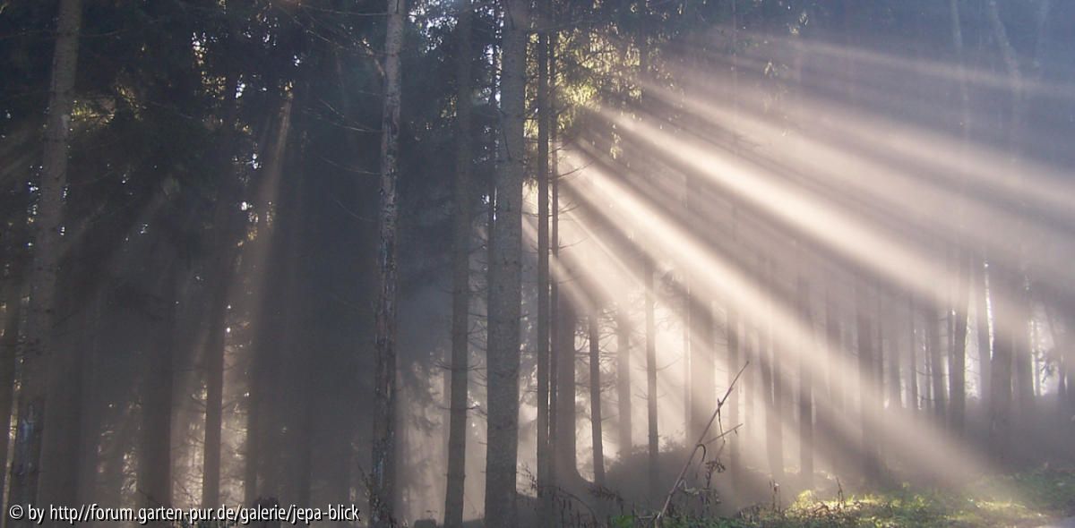 Bildname: Lichtstrahlen im Wald