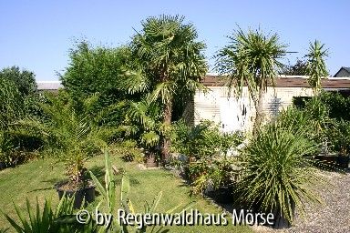 [b]Die große Palme im Hintergrund ist ein Trachycarpus fortunei. Gekauft und ausgepflanzt im Juni 1993. Sie ist in den vielen Jahren auf ca.4m länge gewachsen.