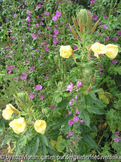 Bildname: Gewöhnliche Nachtkerze und Wilde Malve, Rosspappel