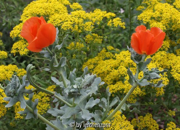 Bildname: Glaucium flavum var. aurantiacum vor Alyssum murale