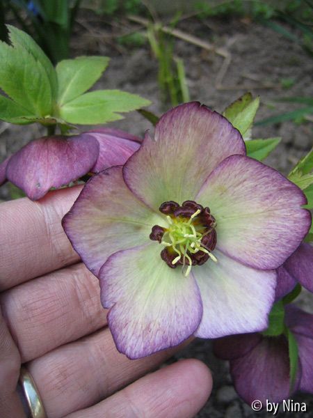 Bildname: Helleborus brombeerfarbener Rand creme grün