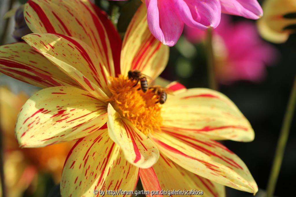 Bildname: Dahlie gelb mit roten Streifen