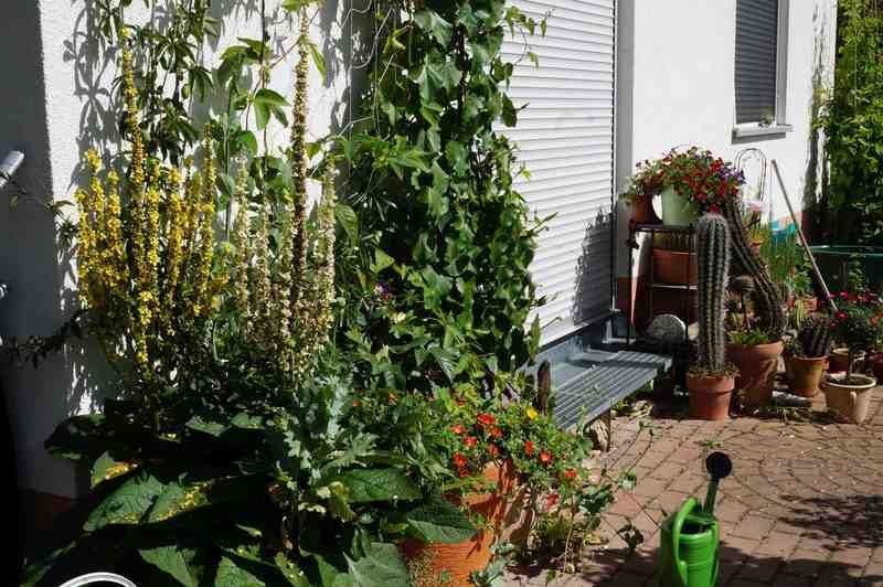 Schön, die Ruhmeskrone ist bei mir schon lange verblüht. Ich hab sie zu früh in den Kübel gepflanzt.Portulakröschen sind sehr nette Unterpflanzung. Bei den Passiflora haben sich dieses Jahr zusätzlich noch 2 Verbascum ausgesät (bzw. letztes Jahr) und man sieht was das für Monster werden, wenn sie gut gefüttert und gegossen werden.[IMG]http://i77.photobucket.com/albums/j42/Amur2/DSC02673_zpsdsq37sev.jpg[/img][IMG]http://i77.photobucket.com/albums/j42/Amur2/DSC02674_zpswnodnd7o.jpg[/img][IMG]http://i77.photobucket.com/albums/j42/Amur2/DSC02675_zps6y1i4s7y.jpg[/img]Gegen die Ipomoea Alba im Hintergrund sind die Passiflora aber Waisenknaben. Die Winde hat schon fast den Hausgiebel erreicht. Unten beginnen nun täglich mehr Blüten sich zu öffnen. Halten aber leider nur eine Nacht.