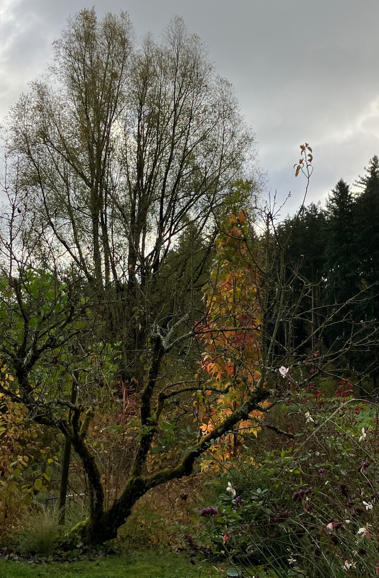 Erstaunlich, daß der Gumball so lange das Laub hält. Ist bei meiner Tochter in Bayern auch so... eventuell sogar sortenbedingt?