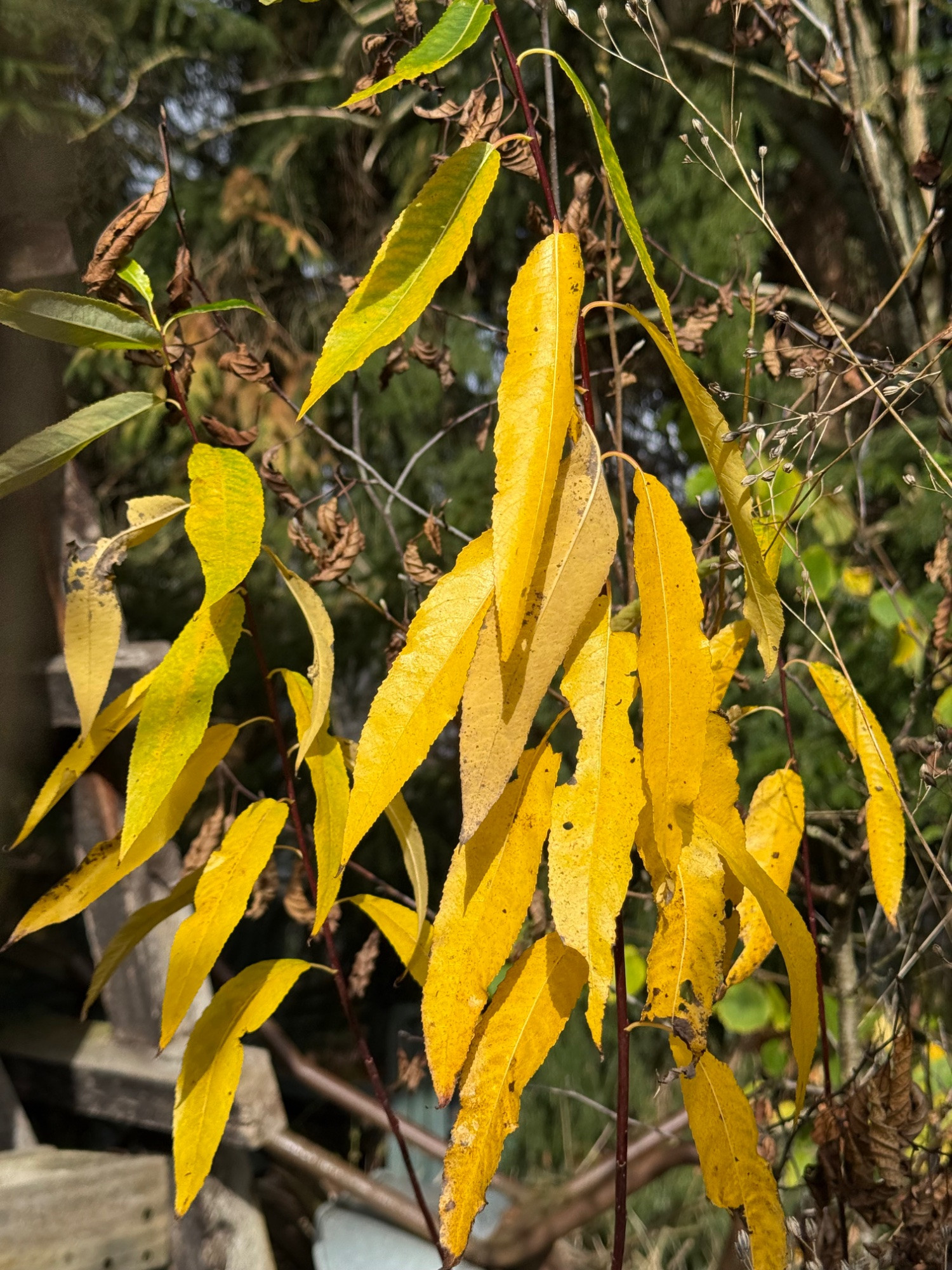 Salix Daphnoides hat eine schöne gelbe Herbstfärbung.
