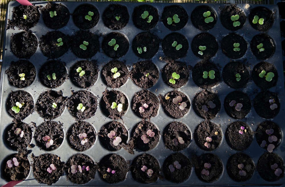 Letzte Woche, Chinakohlaussaat in Pflanzplatte. Zwei Sorten, Spectrum und Scarvita. Kommt auf den Platz des abgeräumten Zuckermaisbeets. Ging gut auf: