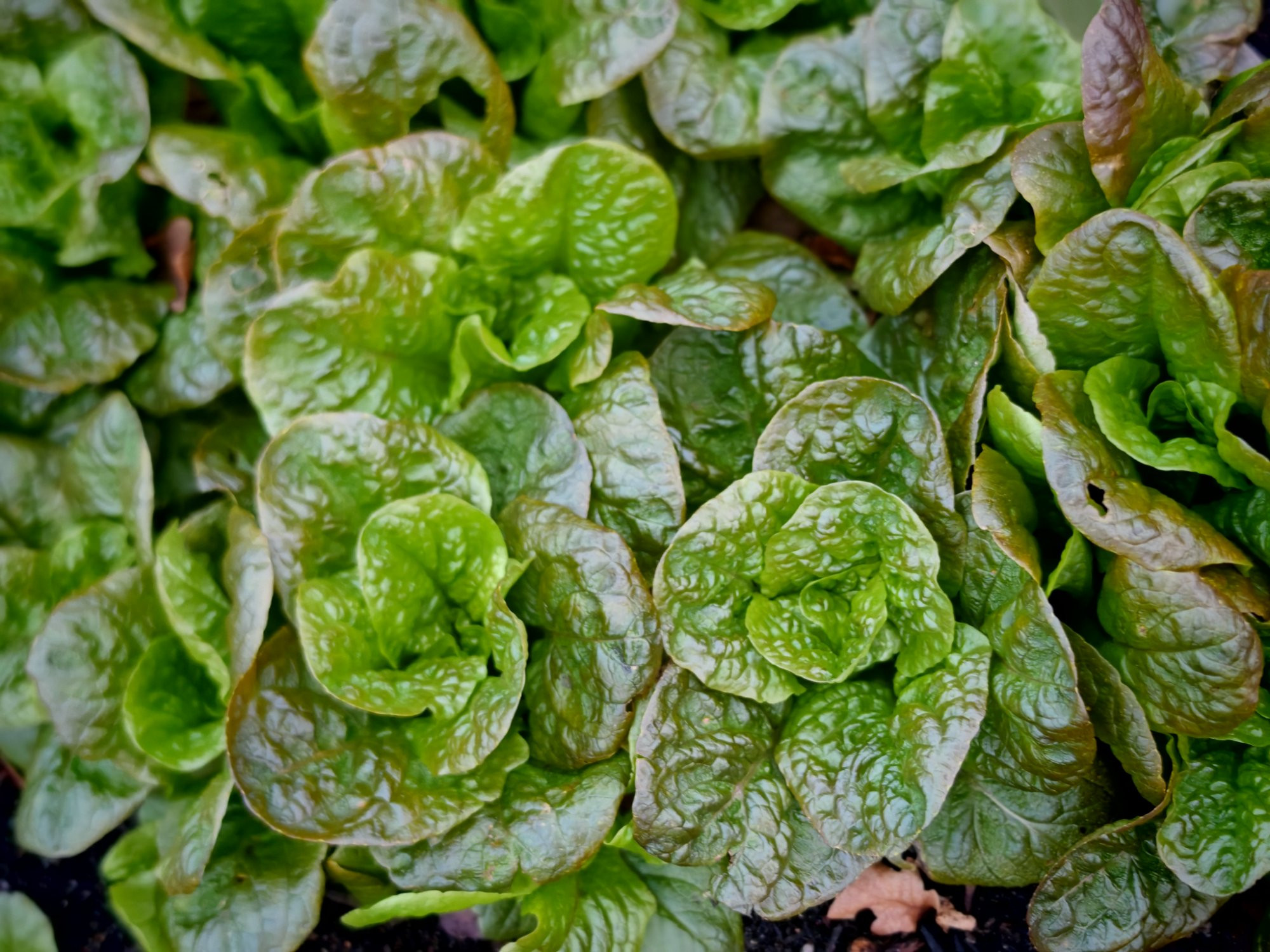 Für den Verzehr im Winter, da säe ich Herbstsorten aus und hoffe, dass sie den Dezember ohne Fäulnis überstehen. Ohne Gewächshaus macht da bei Blattsalaten im Normalfall die Feuchtigkeit einen Strich durch die Rechnung. Da opfere ich also eher wenig Beetfläche extra dafür, wenn werden da die klassischen Herbstkulturen wie Endivien verlängert, also später geerntet, weil noch welche übrig sind.