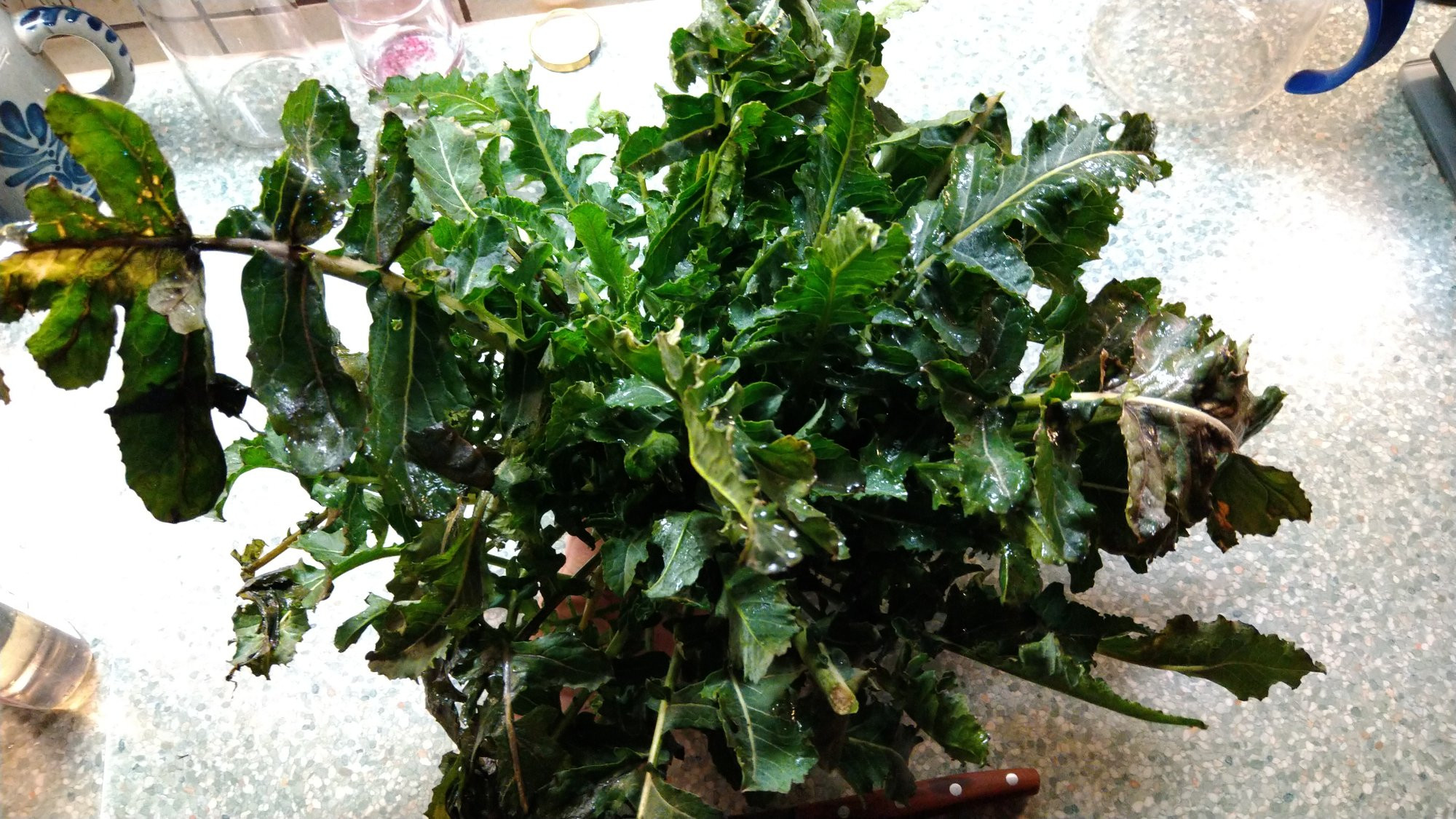 Ganz so groß sind die Senfe in meinen Hochbeeten nicht, dafür aber viele verschiedene Salate, von denen ich, wenn es frostfrei ist, täglich ernten kann.
