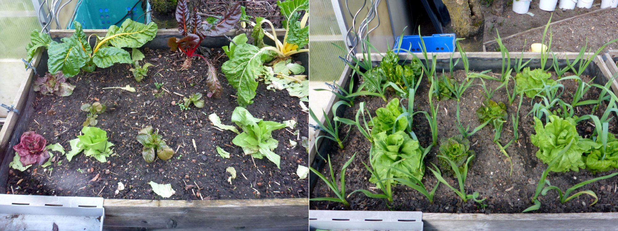 Das -11°-Foto mit gut entwickelten Zuckerhüten ist genau so ne Info, wie ich sie gerne hier etwas zusammenzutragen würde: Was geht und was geht nicht mehr unter welchen Bedingungen, was Entwicklungsgröße der Pflanzen, Temperatur und Abdeckung anbelangt. Meine -12-überlebenden Zuckerhute waren im Dezember ziemlich runterbeschnitten und boten deutlich weniger erfrierbare Pflanzenmasse an: Sie trieben dann halt ab März wieder gut durch und waren dan Anfang April wieder gut als Pflücksalate zu gebrauchen.
