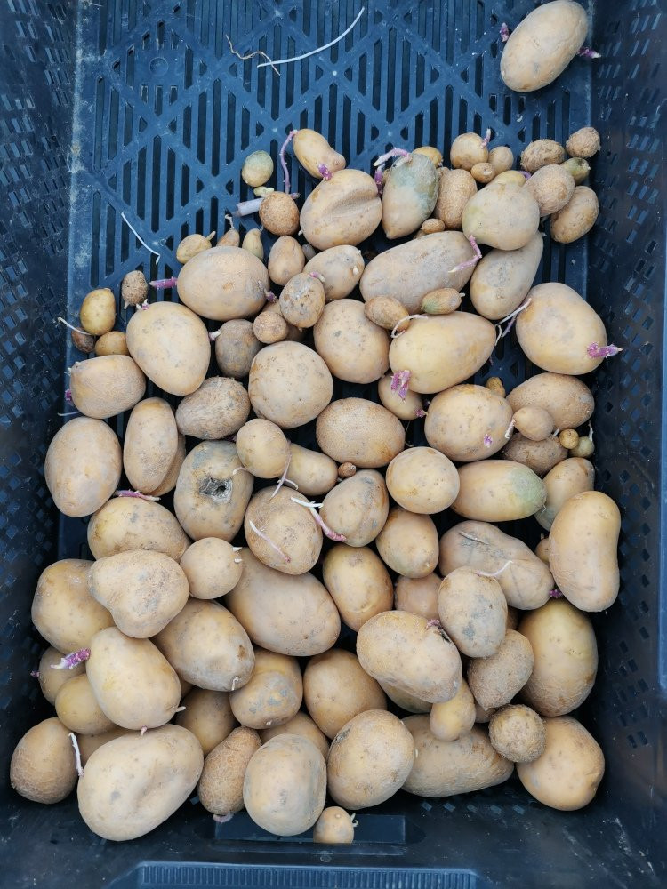 Das sind nicht die Knollen aus meinem Garten. Die Pflanzkartoffeln dazu waren von mir, aber in einem anderen Garten angebaut. Der hat kaum welche gegessen, deshalb die Knollen jetzt mal gerettet. Und die gehen jetzt auch zügig weg, da freuen sich auch schon wieder andere, die längst leer gelaufen sind. Also Überproduktivität ists eher nicht. Ein Verteilungsproblem.