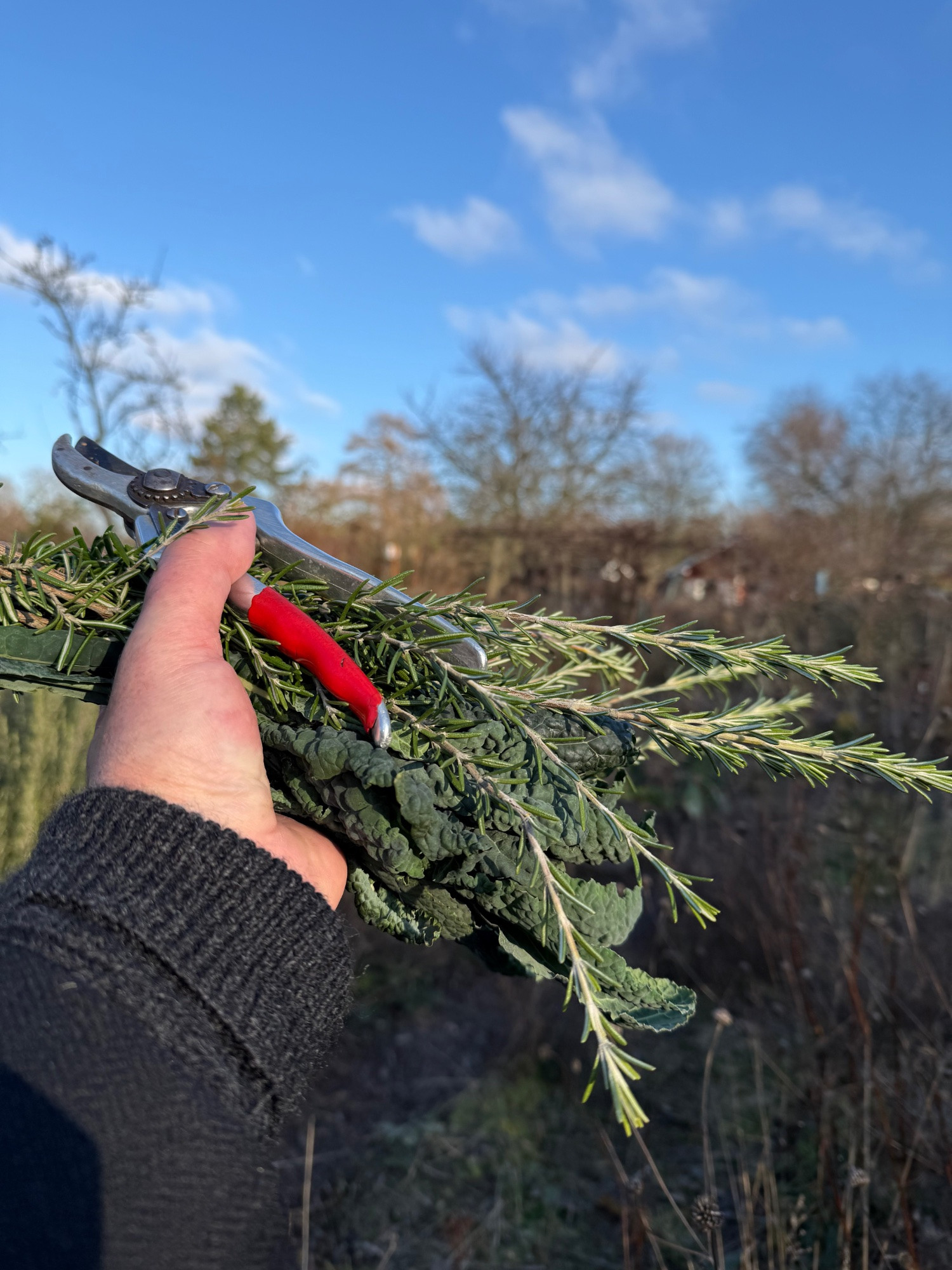 der frost war schon bzw. noch drin heute über tag, trotz voller sonne – also schnell eine handvoll zeugs für die weihnachtsküche geerntet...