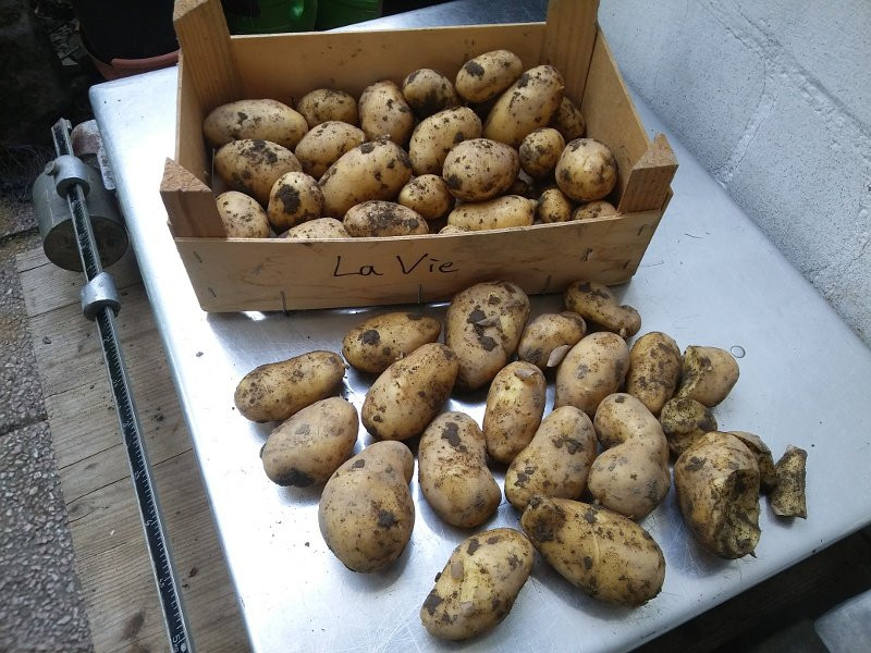 Das sind nicht die Knollen aus meinem Garten. Die Pflanzkartoffeln dazu waren von mir, aber in einem anderen Garten angebaut. Der hat kaum welche gegessen, deshalb die Knollen jetzt mal gerettet. Und die gehen jetzt auch zügig weg, da freuen sich auch schon wieder andere, die längst leer gelaufen sind. Also Überproduktivität ists eher nicht. Ein Verteilungsproblem.