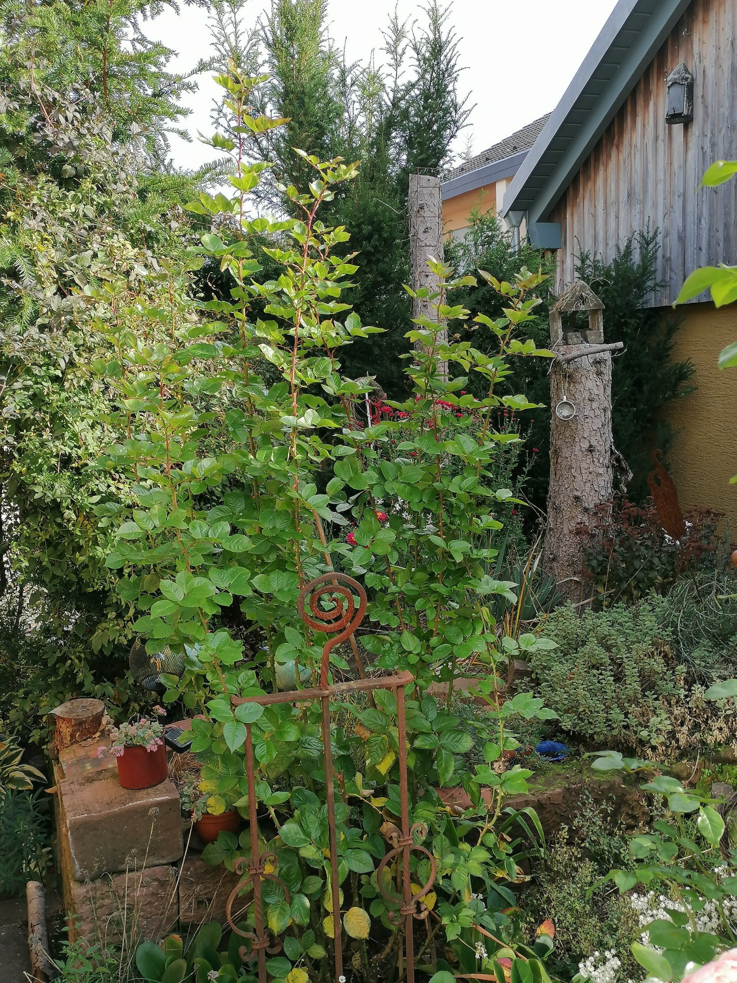 Ich kann's natuerlich nicht mit Sicherheit sagen, aber diese rote Sorte gibt's hier, glaube ich, noch etwa zehnmal (sehen fuer mich jedenfalls irgendwie gleich aus). Mein erster Gedanke war, die hier zu retten zu versuchen, aber ich nehme dann lieber einen der anderen Kandidaten.Hyla hat geschrieben: ↑11. Okt 2025, 00:18 Man kann aus gesunden Trieben noch Steckholz machen und versuchen, sie über den Winter zu bewurzeln, falls du die Sorte aus nostalgischen Gründen behalten möchtest.![]()