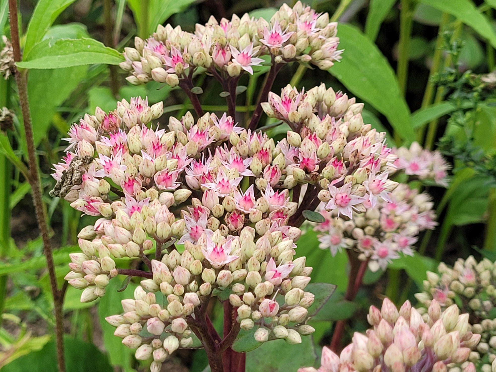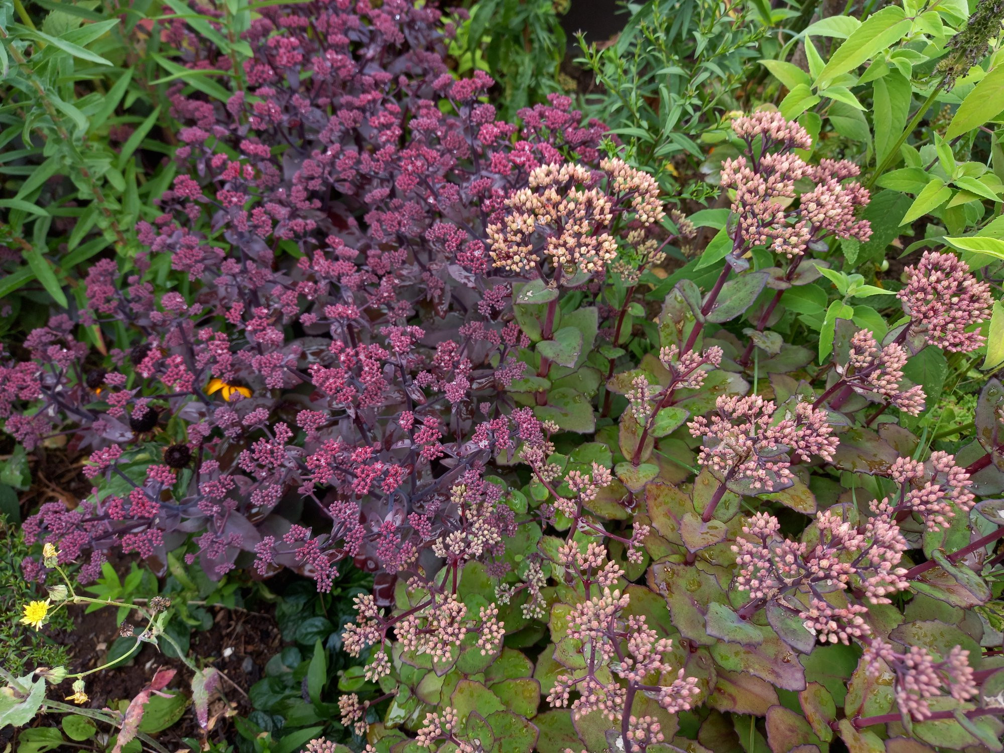 Es geht los... einige hohe Sedum beginnen mit der Blüte.