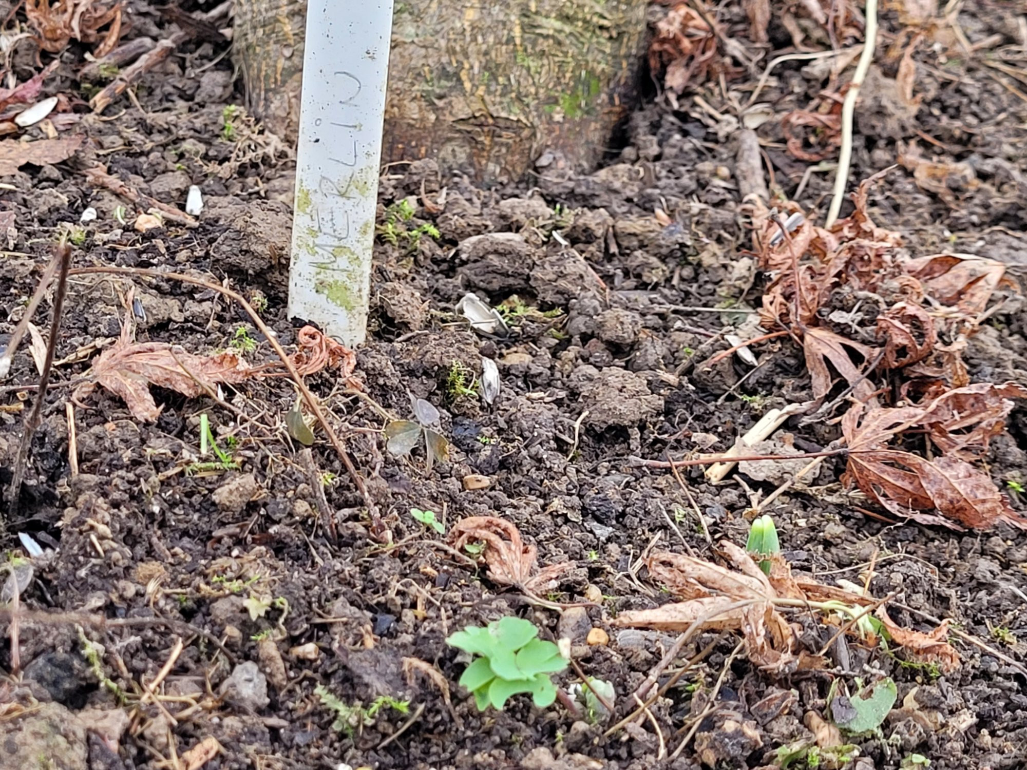 Das eine Glöckchen in Blüte kann nicht 'Merlin' sein, dessen komplett grüne Zeichnung ist ja eindeutig. Sieht etwas aus, wie ein 'Three Ships ', das würde von der Blütezeit her ja passen. Aber wie kommt das auf die komplett andere Seite des Gartens ???