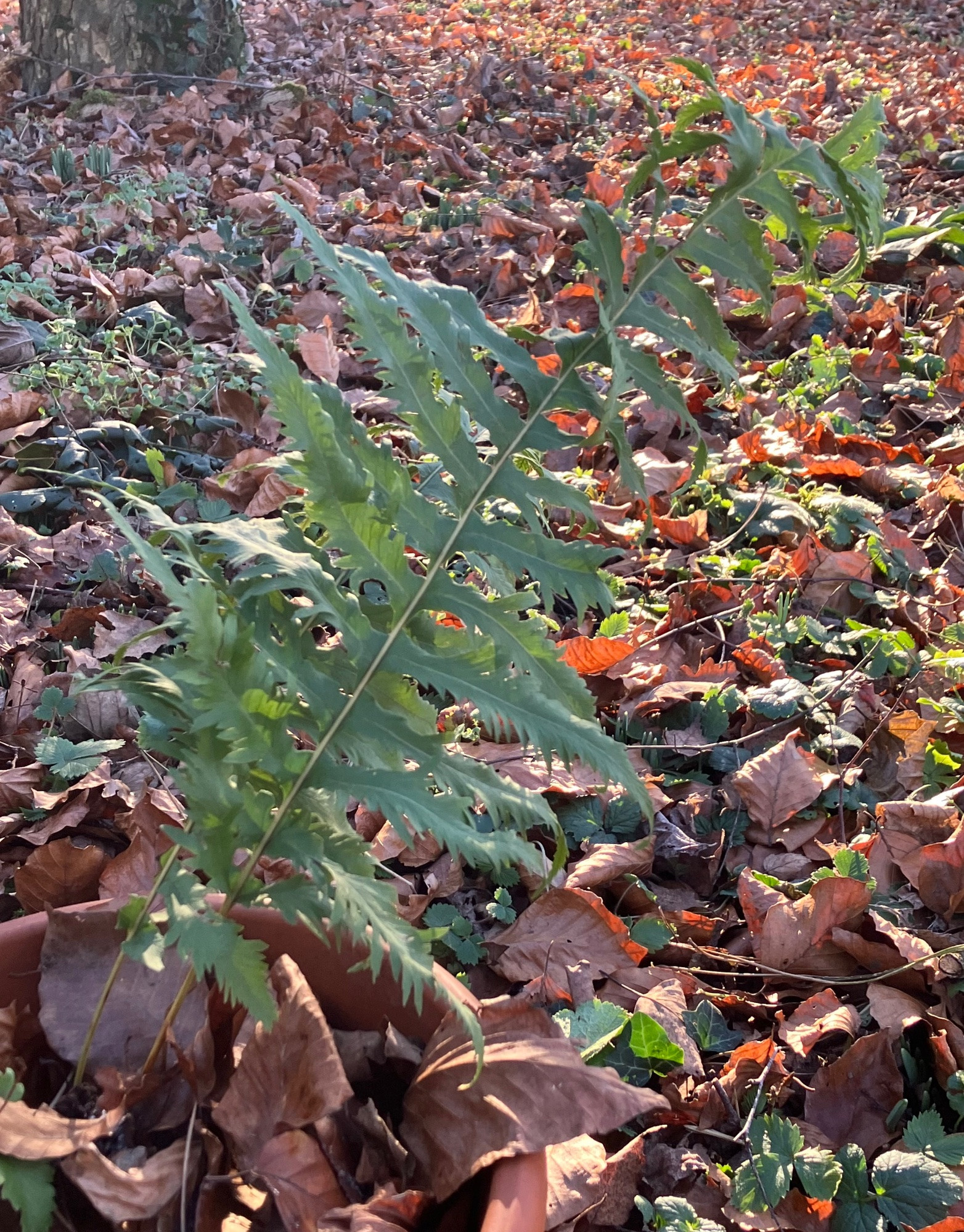 Dachte, er sei auch ein Polypodium cambricum, aber er ist Polypodium calirhiza `Sarah Lyman`,(Schild sei Dank), noch im Topf.