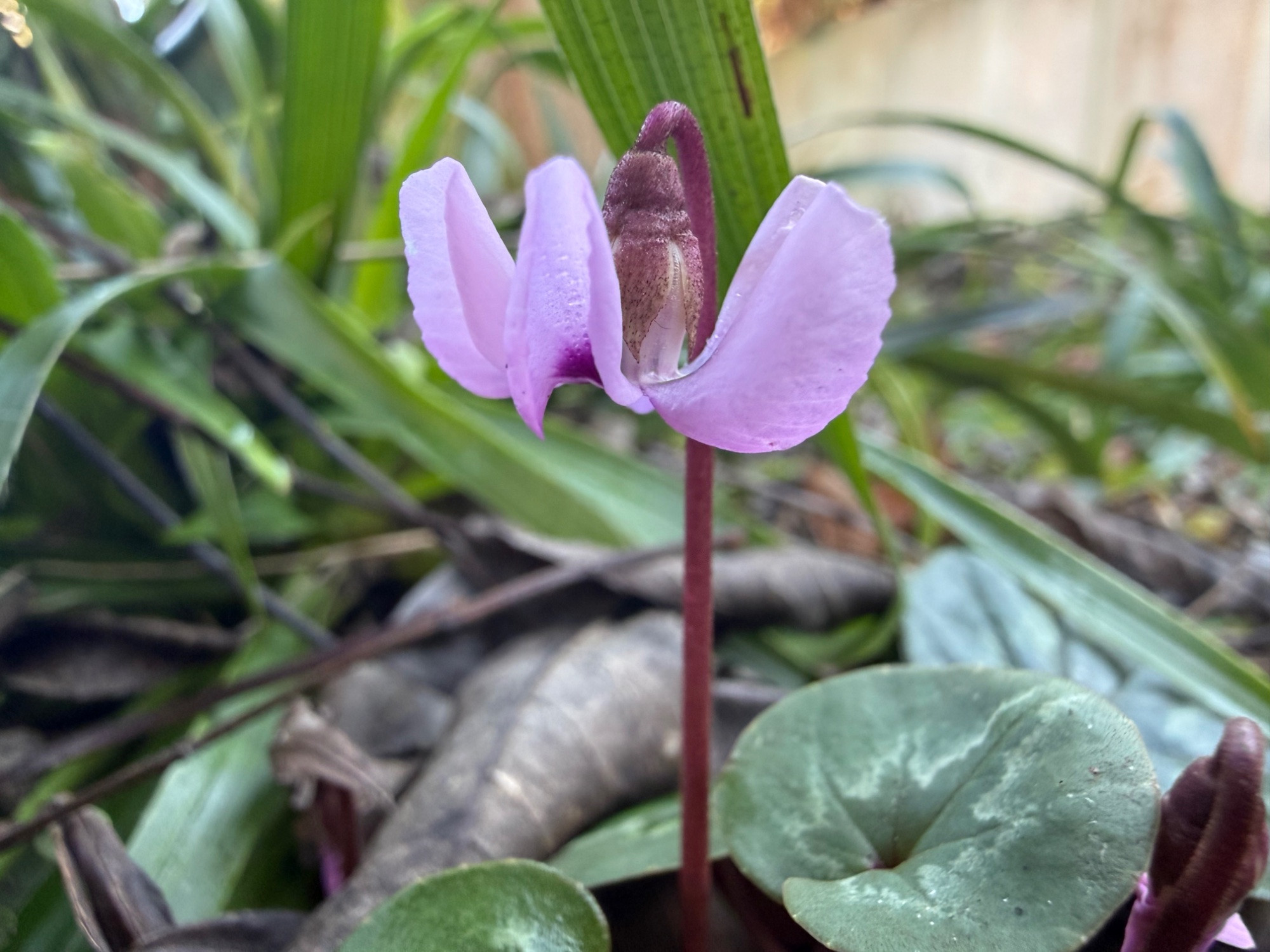 Heute kurz vor 11:00 trotzig erscheint es wieder Cyclamen coum