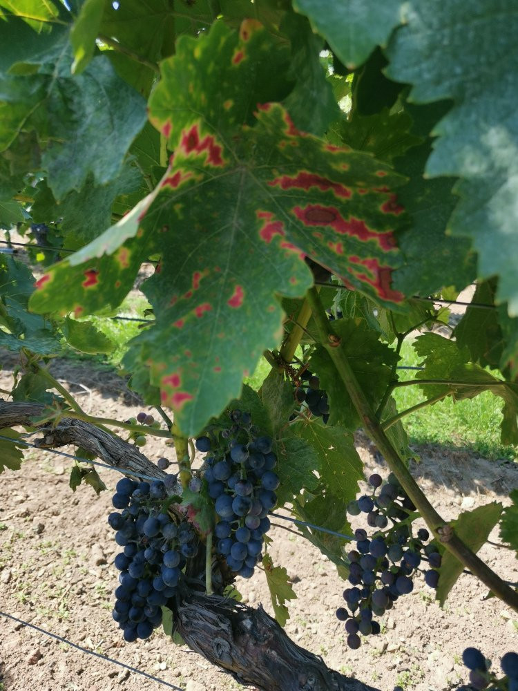 Hier mal noch ein Bild von ESCA Blattsymptomen. Portugieser ist da leider hochanfällig.