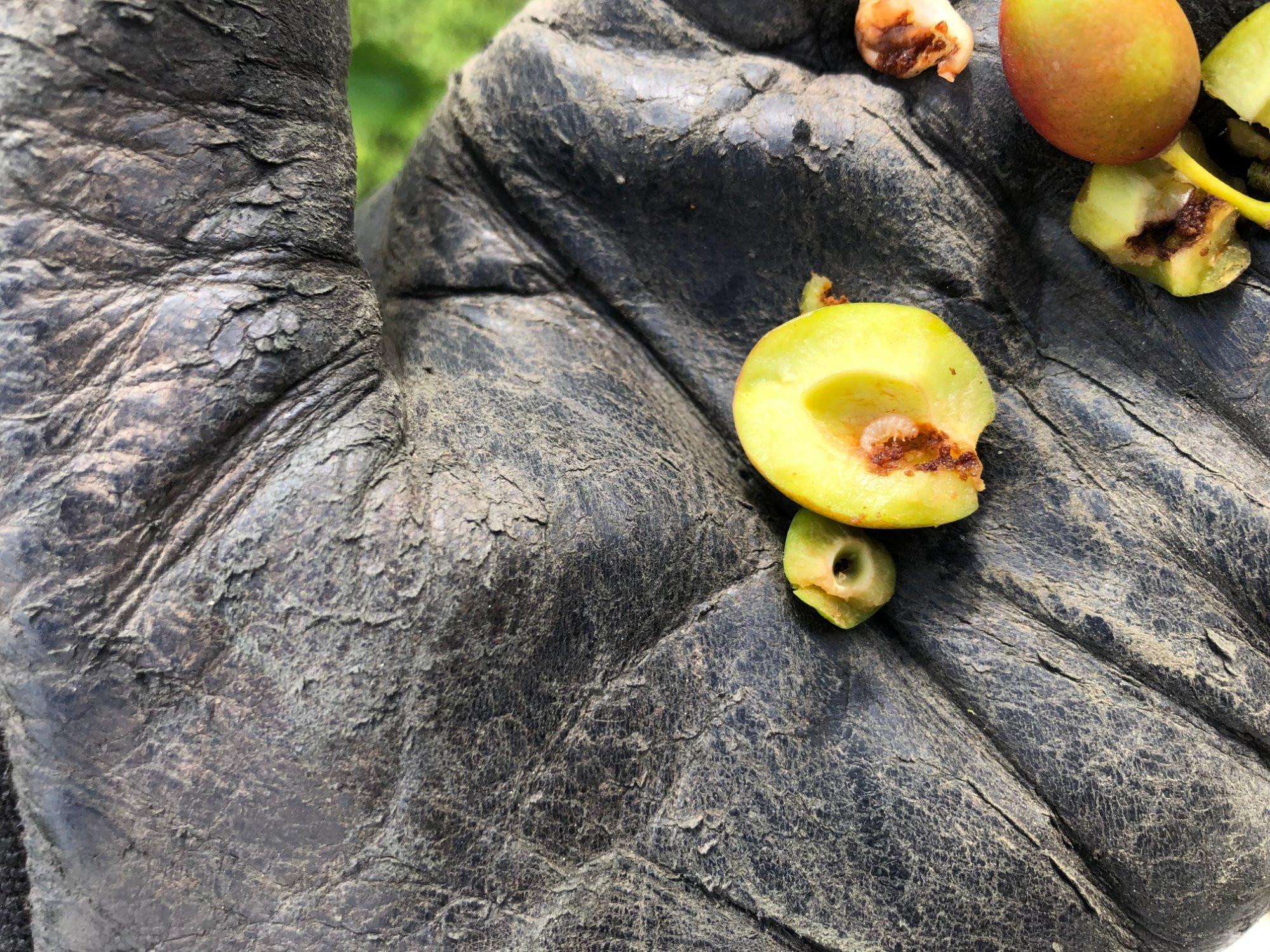 liebe alle, habe das beim Bilder sortieren gefunden, an einer jungen "Russischen Pflaume", die hatte zum ersten Mal etwas mehr Ertrag, und diese Maden saßen in wenigen, sehr früh befallenen Früchten.