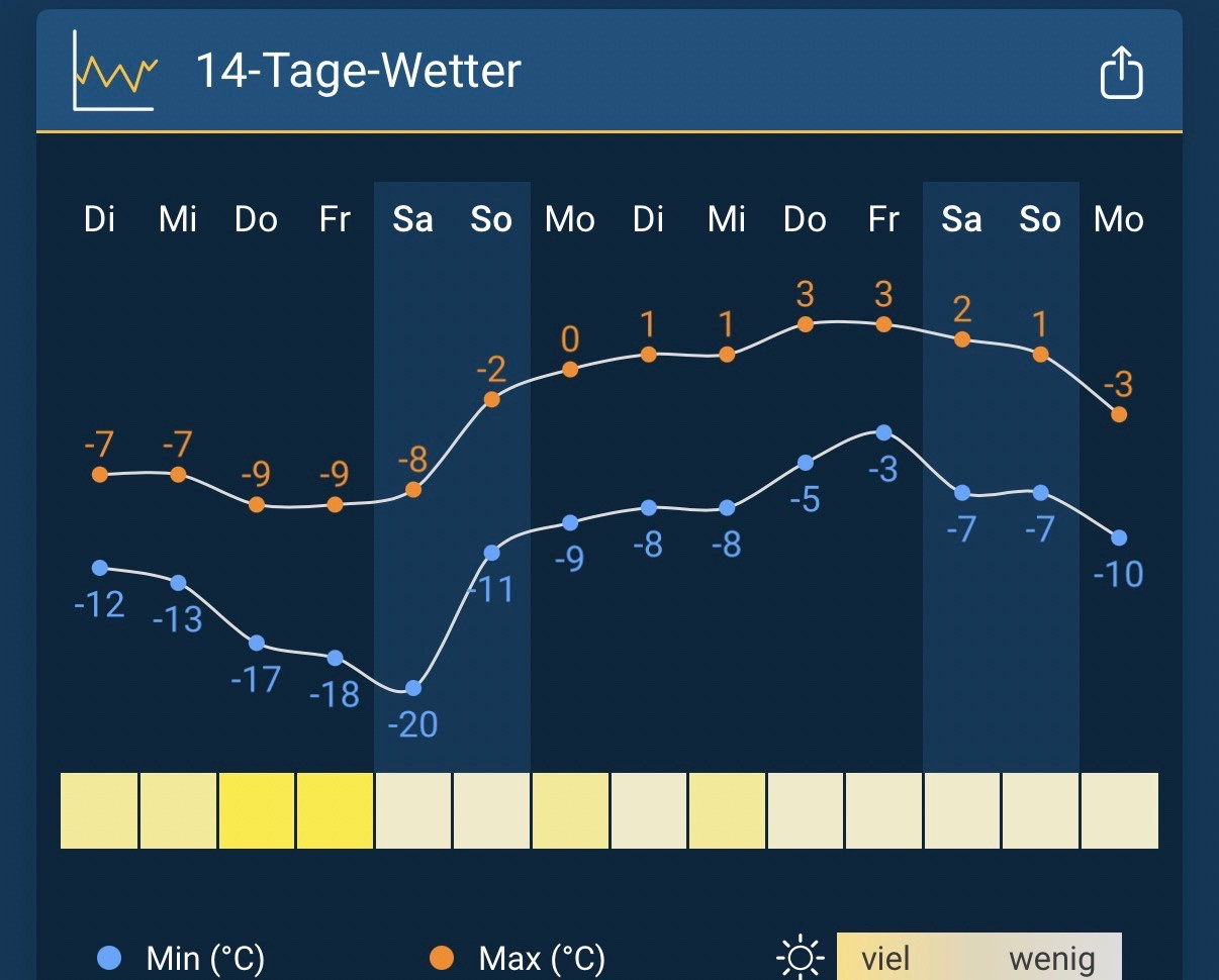 Die neue ORF Wetter-„Fee“ in der ZIB meinte soeben, dass die Temperaturen kommendes Wochenende langsam ansteigen und jetzt ein paar kältere Tage kommen, aber nichts zweistelliges.