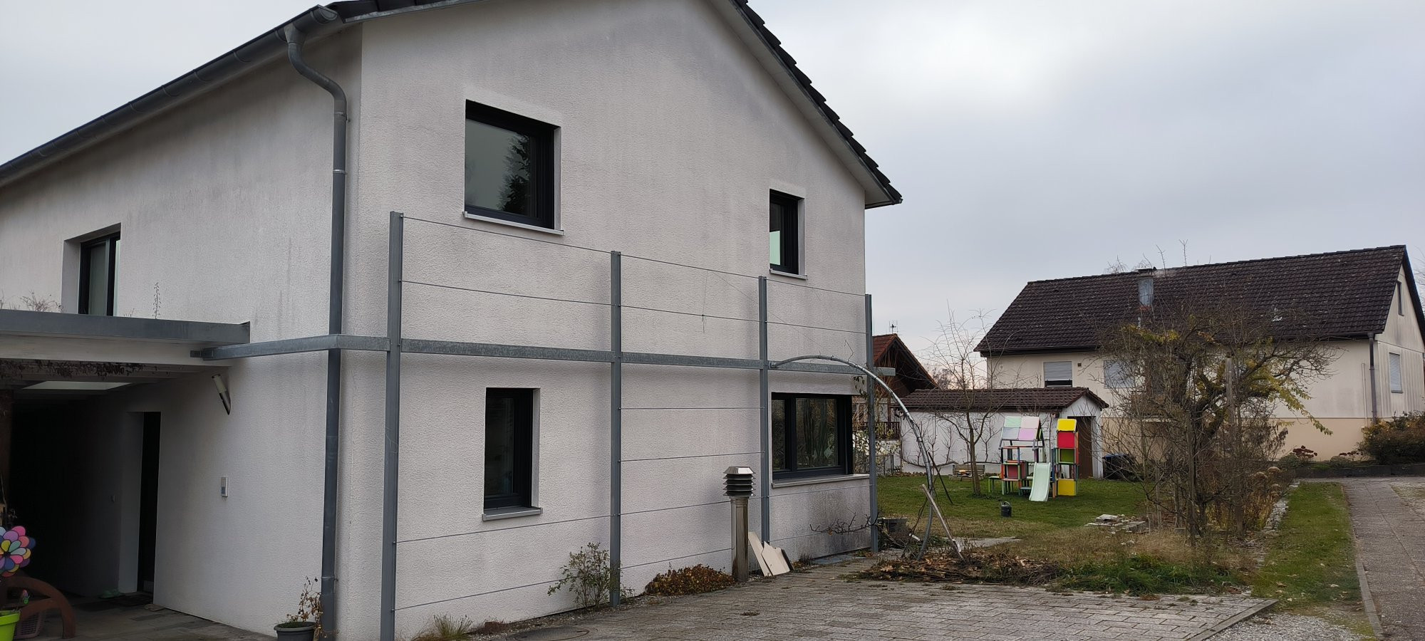 Aber über dem Gestell fehlt jetzt etwas, das sieht noch nicht gut aus. Die Wand ist halt der erste Eindruck, wenn man auf das Haus zuläuft.