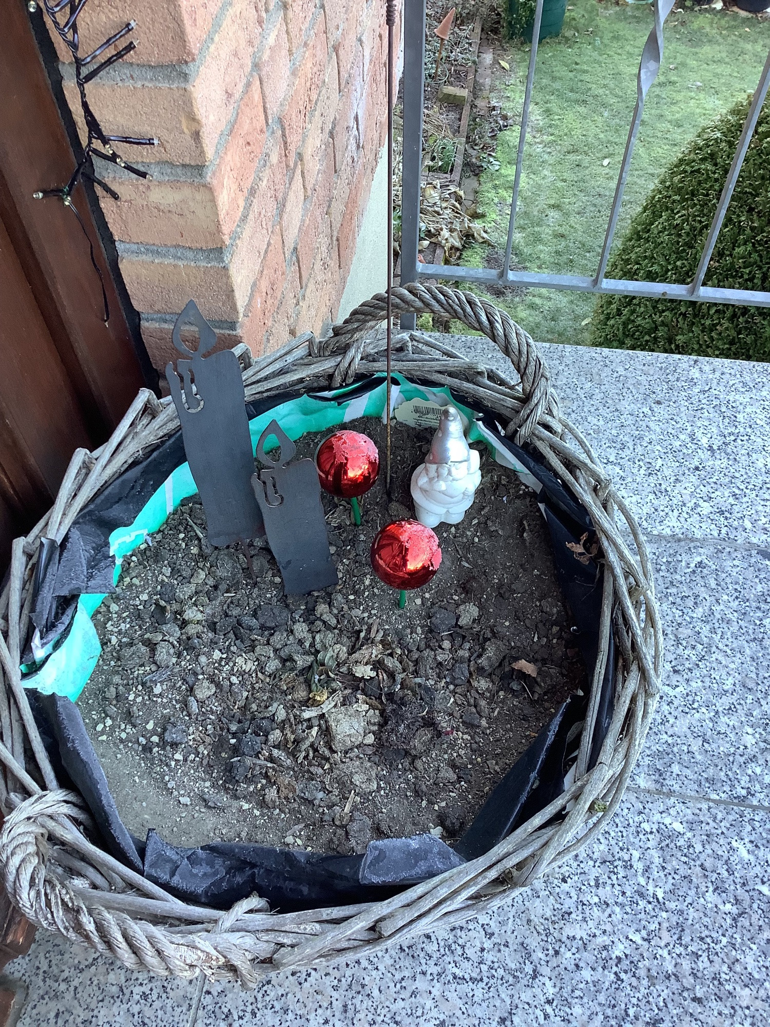 vor der Haustür, ab und zu liegt mal ne Katze in dem Korb.