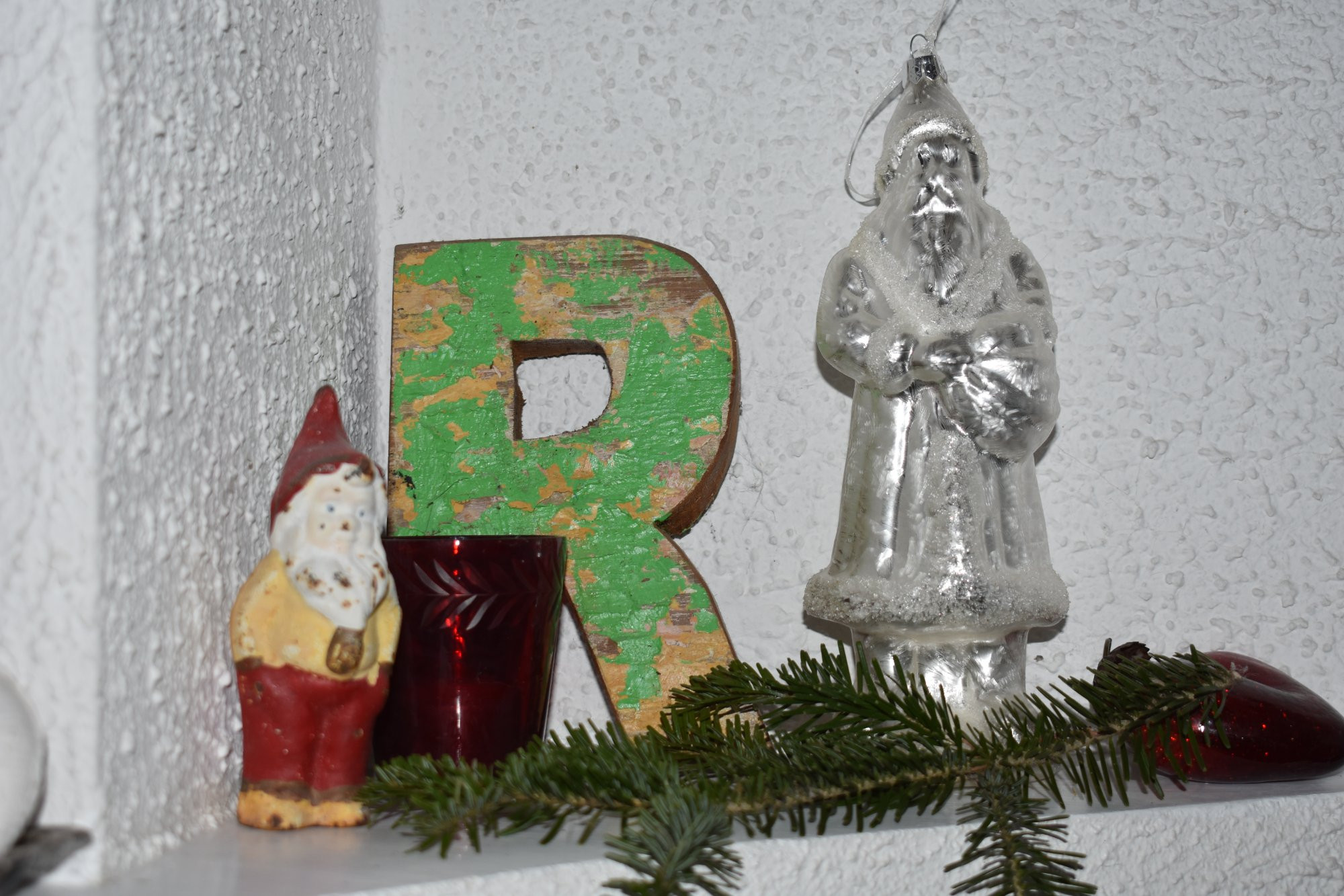 Ich habe diesen hier für zwei Euro in Prag auf einem Flohmarkt erstanden, er steht in der Küche im Kochbuchregal. Was er ursprünglich in der Hand hielt, weiß ich nicht. Im Januar bekommt er immer ein (künstliches) Schneeglöckchen zum Halten.