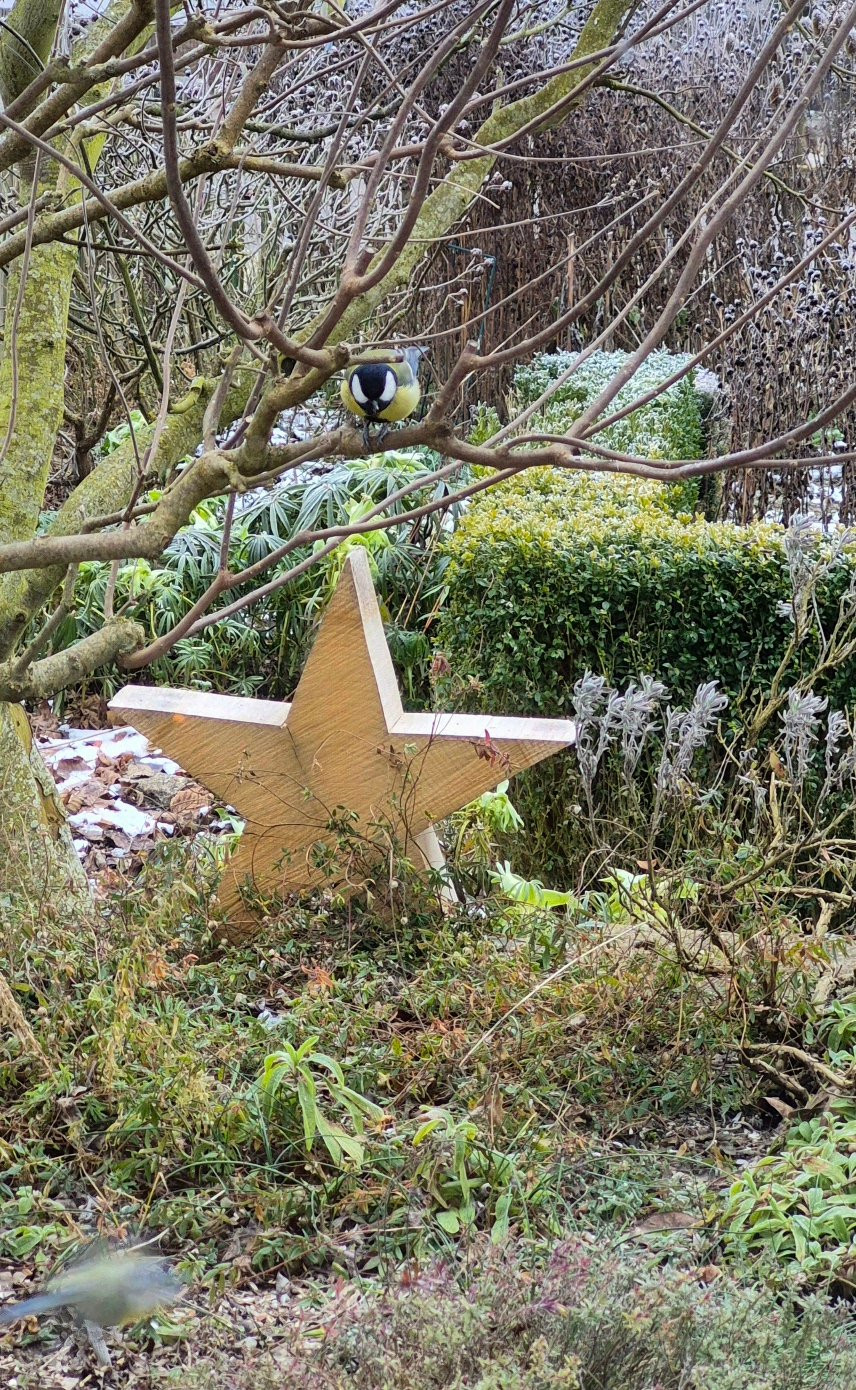 Mein Blick aus dem Esszimmer geht nur auf's kleine Kräuterbeet (wobei die Hälfte schon von Helianthemum überwuchert ist) und den Gemüsegarten. Dafür hat man im Winter die Vögel direkt vor dem Fenster.