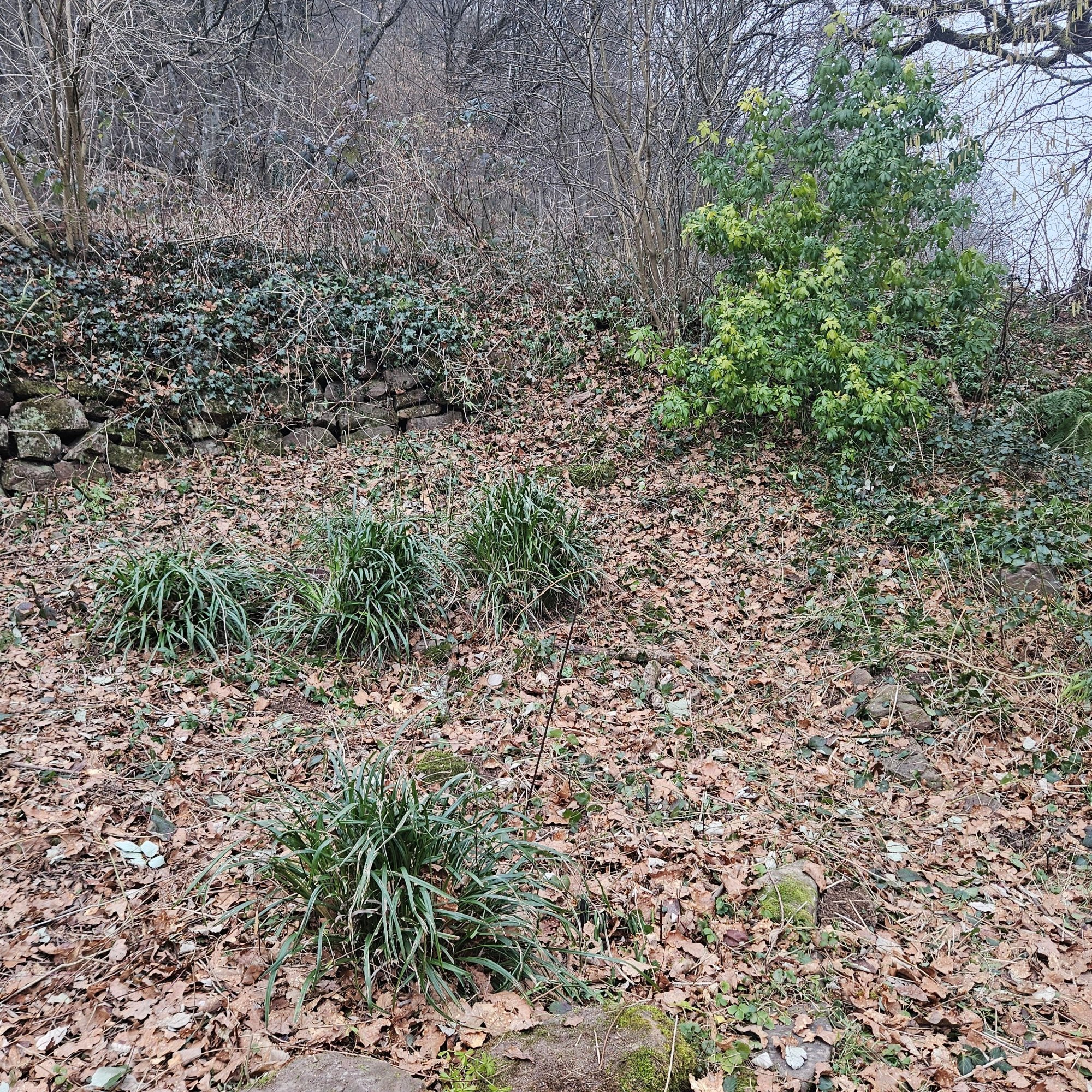die Trockenmauer von links - Hamamelis und Magnolia bis rechts Choisya Moonwalker und noch mal andere Perspektive mit Liriopen. Da ist noch viel Platz für Farne und Kram. Ich muss nach und nach mal schauen, was ich noch in Kübeln und Töpfen hab und da hinsetzen kann.
