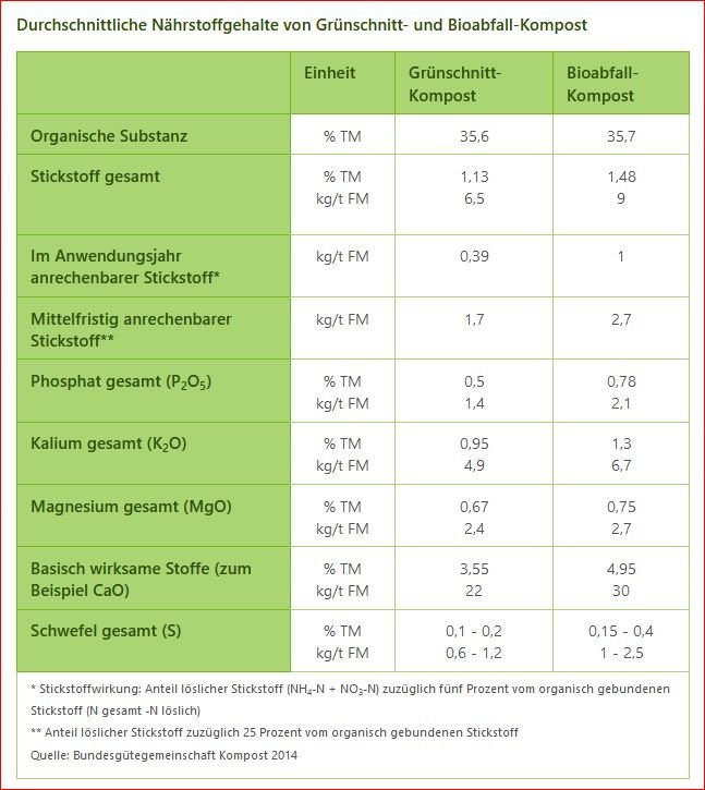 Zumindest für den Vergleich Grünschnitt- versus Bioabfall-Kompost gibt es dazu (von der Bundesgpütegemeinschaft Kompost höchstpersönlich) einen aufschlussreiche Übersicht (siehe Anhang). Quintessenz: Die Unterschiede sind geringer, als man denken könnte.