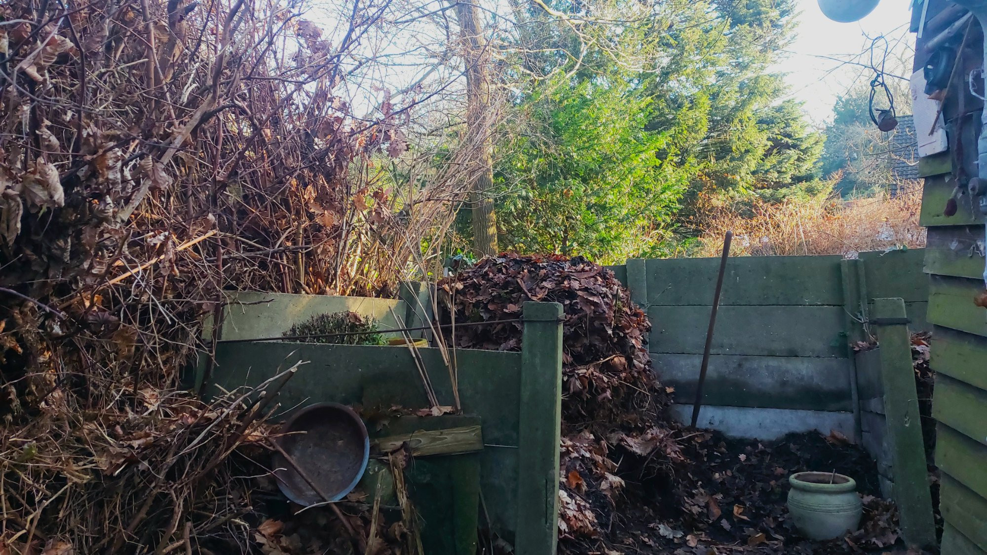den einfachen Kompostabwurf, so daß ich ich sie vorübergehend und kurzentschlossen nochmal quasiwiederbelebt habe ( in der Zwischenzeit hat die lokale Schneckengemeinde diese Installation für sich entdeckt. )