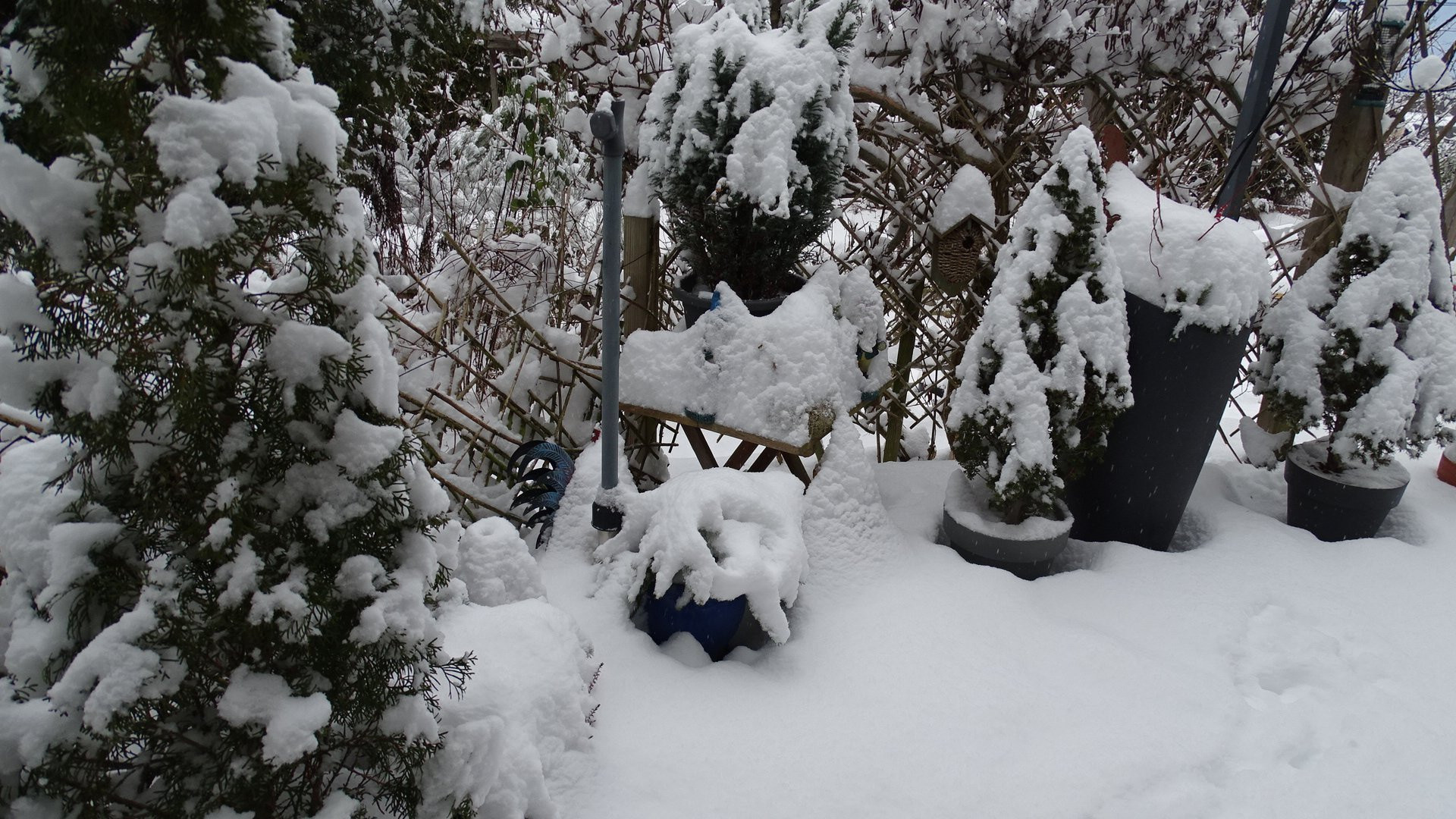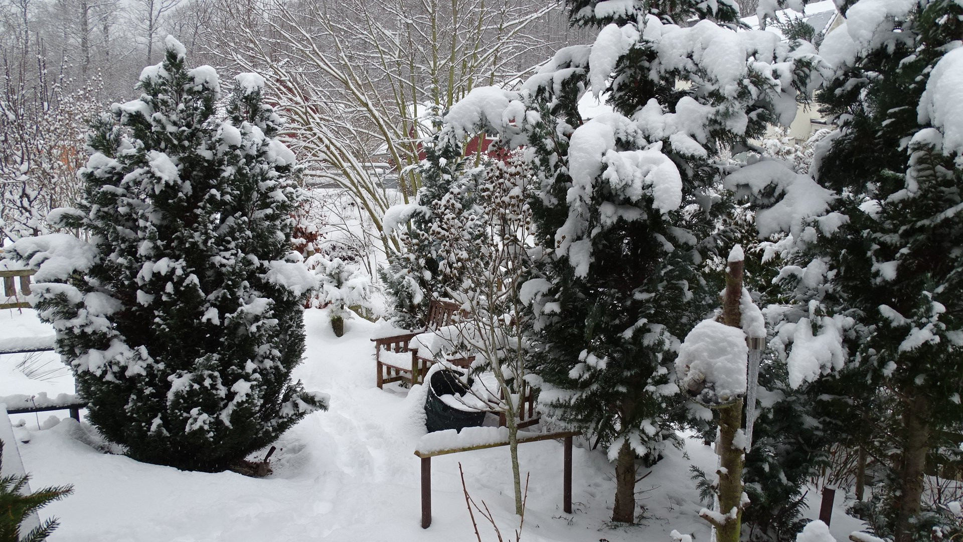 Heute um die 6° C, der die Woche gefallene Schnee ist fast weggelaufen. Im Garten steht das Schmelzwasser auf dem gefrorenen Boden. Ab und an Regen über den Tag verteilt und ganz schön windig. Morgen soll es wieder ordentlich schneien.