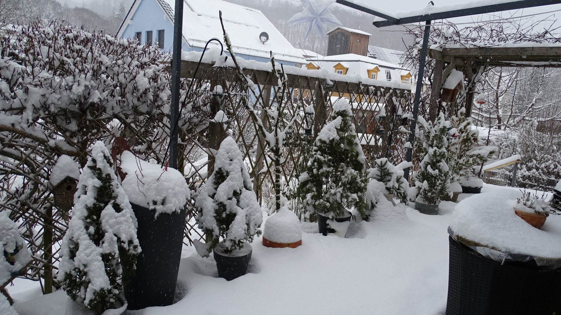 Hier schneit's und schneit's seit ca. 6 Uhr morgens. Es hat draußen nur -2,6 Grad, aber inzwischen sind es an die 30 cm Schnee.