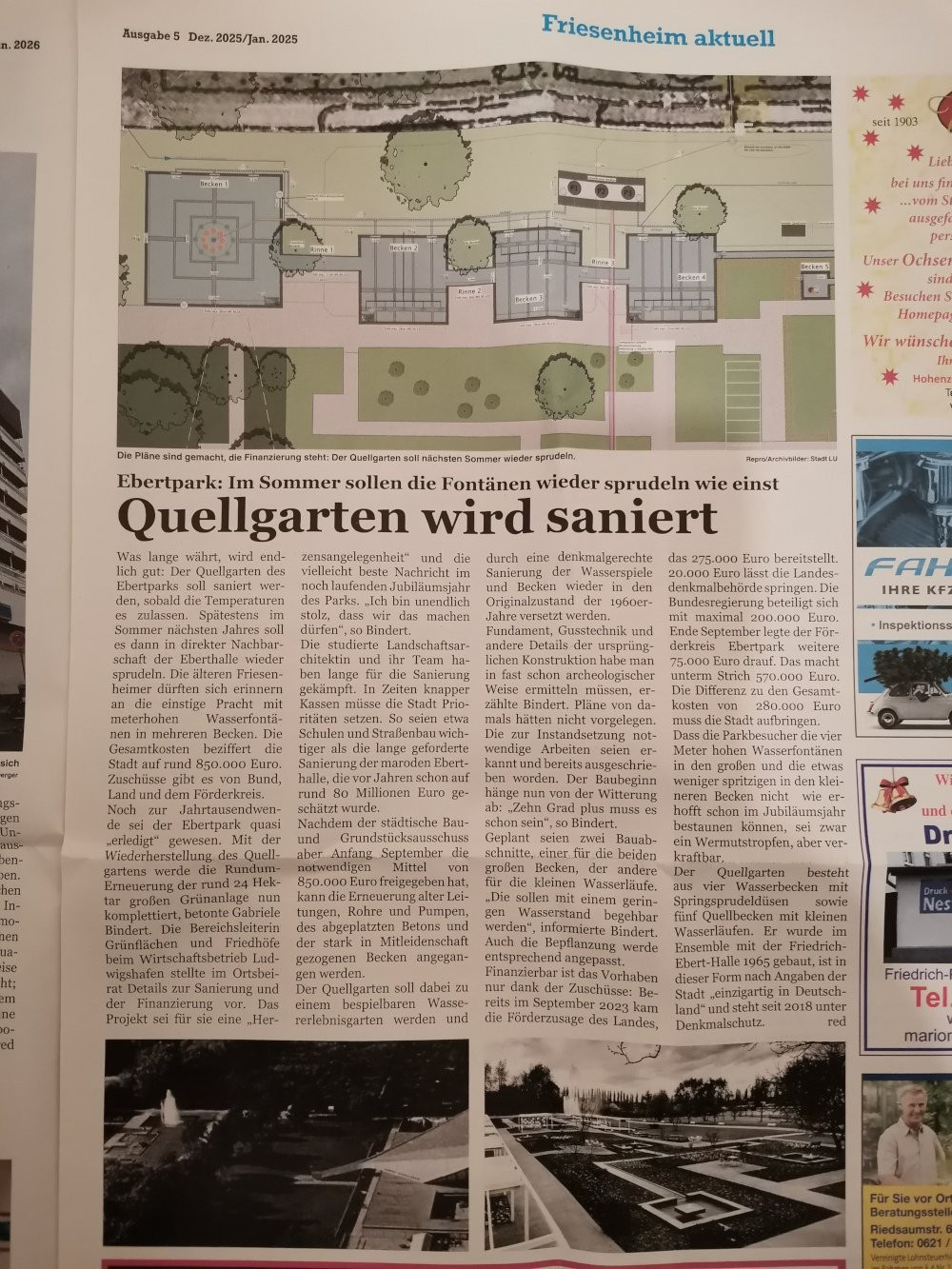 Es gibt neues zum Ebertpark. Der Quellgarten soll wohl saniert werden, das Finanzierungskonzept steht.