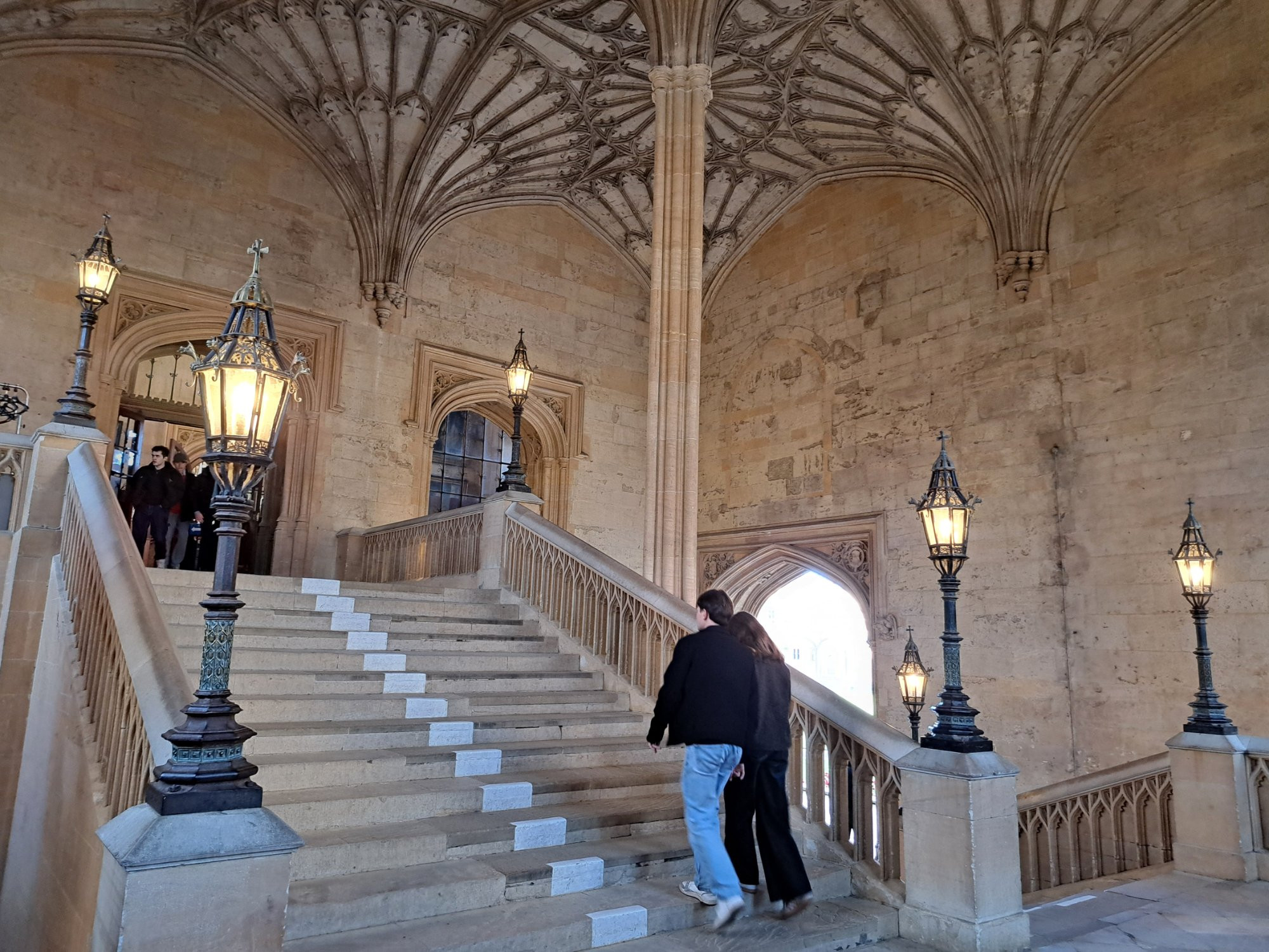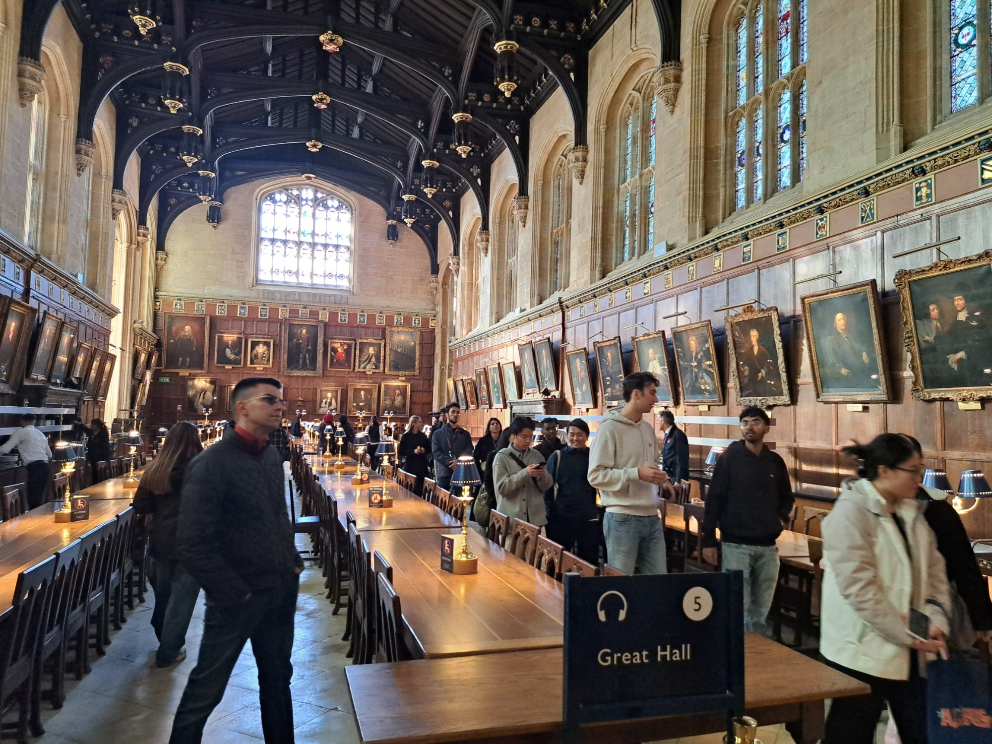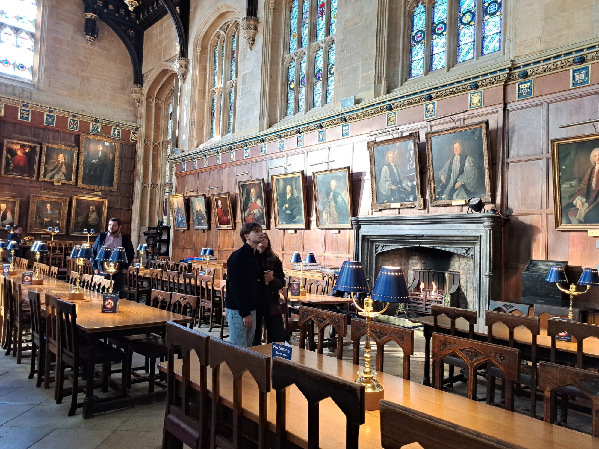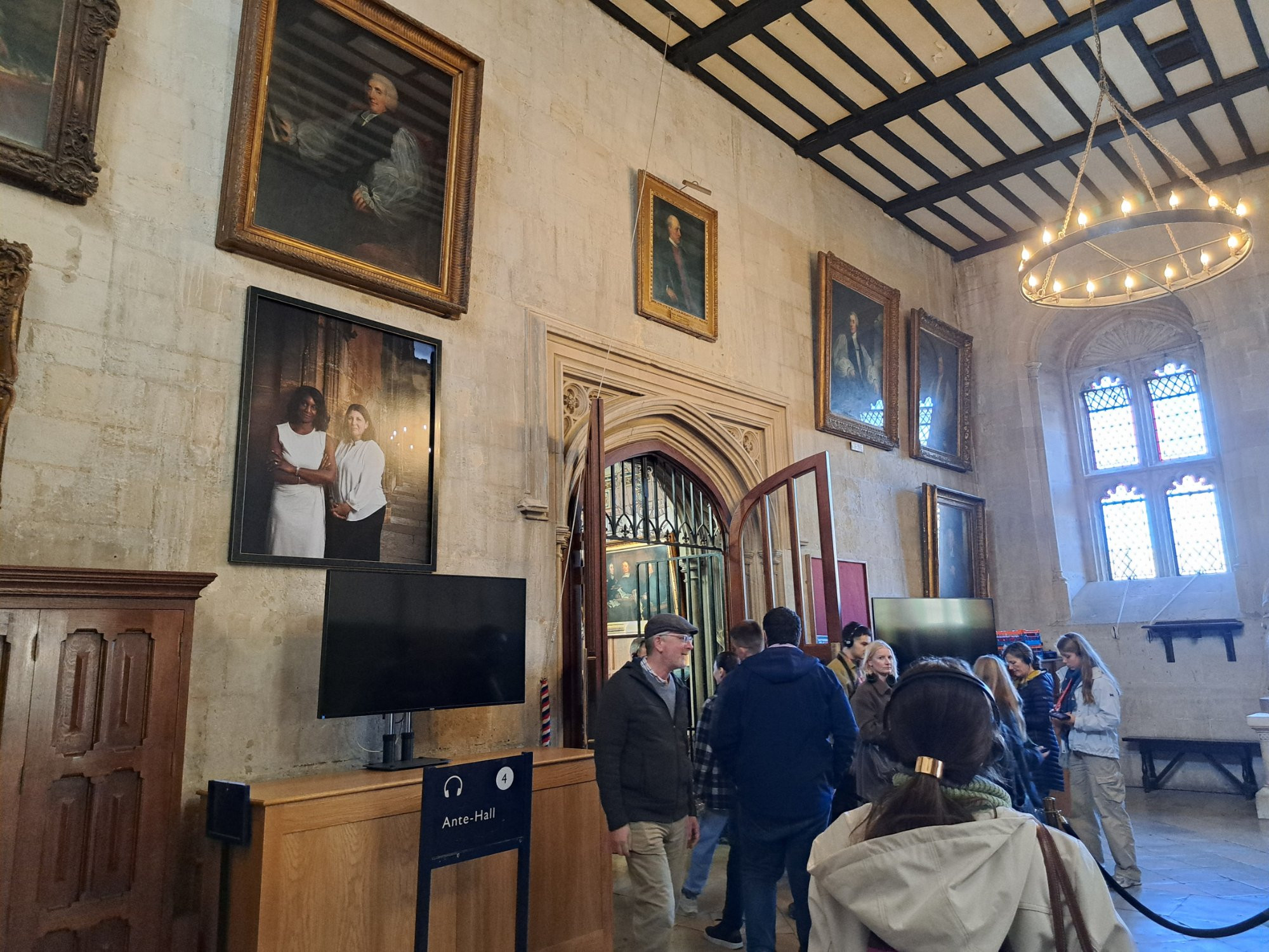 Die Great Hall wird für die Uni ganz regulär für Mahlzeiten benutzt, davor und danach kann sie besichtigt werden. Meine Kinder haben gerade festgestellt, dass für den Film offensichtlich noch eine vierte Tischreihe eingebaut wurde.