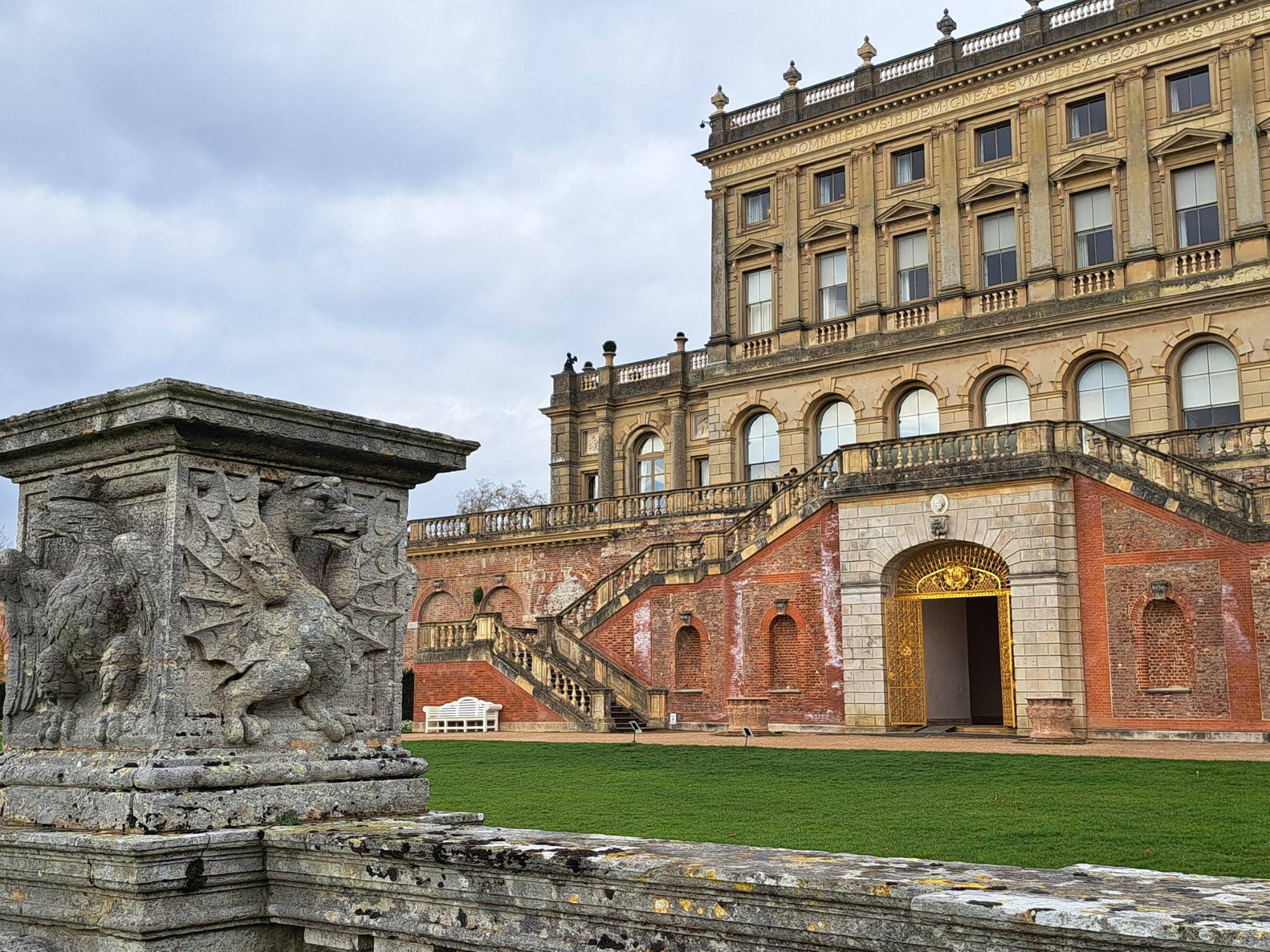 Hab dann auf der anderen Seite einen Zugang gefunden. Blick auf South Terrace und das Cliveden House: Parterre DIe Reliefs gefielen mir gut.