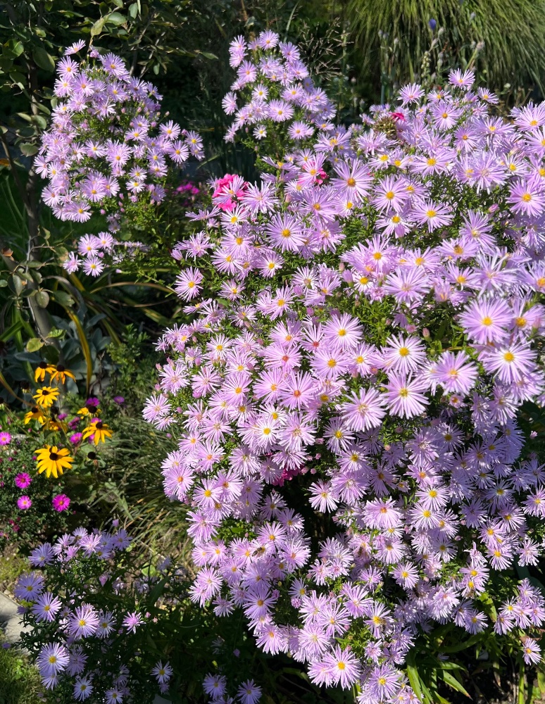 Solidago rugosa 'Fireworks' beginnt zu blühen, heuer fast 2 m hoch.